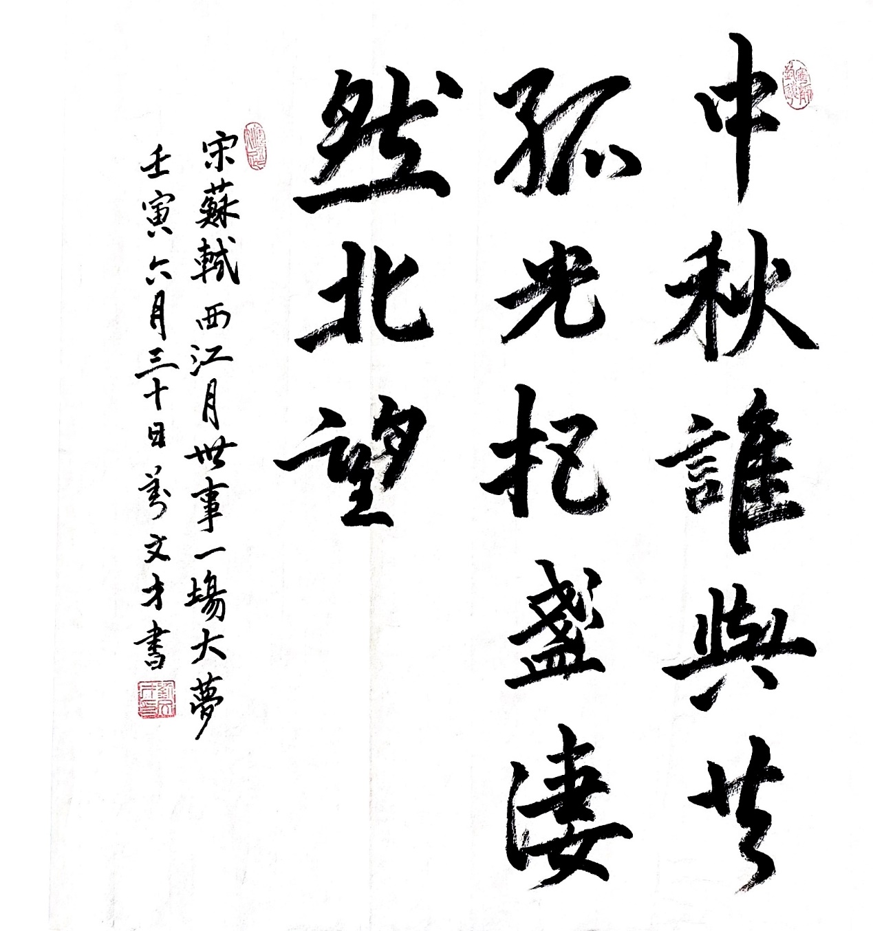作为一名重庆话九级选手,刘文昊同学在为书法作品拍摄的视频中,还用重庆话朗诵了《西江月·世事一场大梦》。