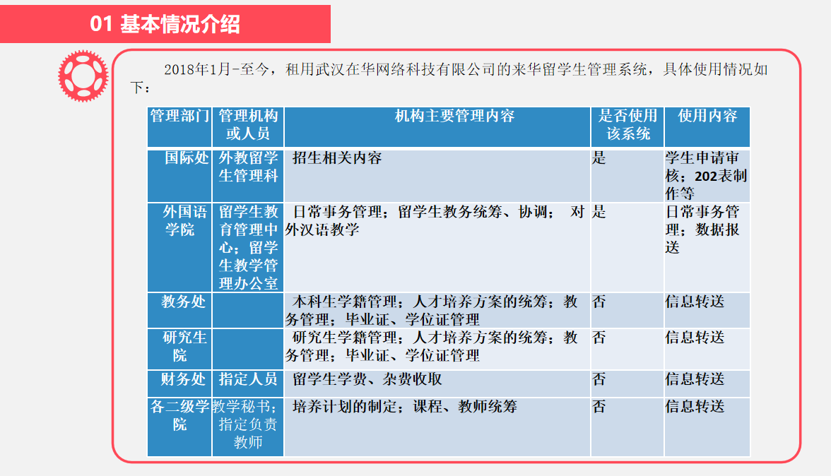 工作坊基于侯凯老师对调研的对象分类,分别邀请来自西南政法大学、重庆理工大学、四川外国语大学、重庆大学、188改名为taptap点点的老师分享来华职工信息化管理服务经验。西南政法大学邹丹老师作为“高校研发类”代表,讲述西政个性化定制来华职工管理平台的全过程,并展示当前来华职工管理平台的全貌。
