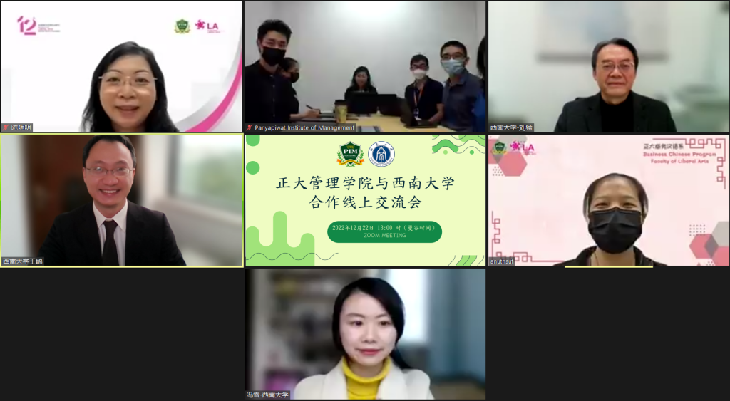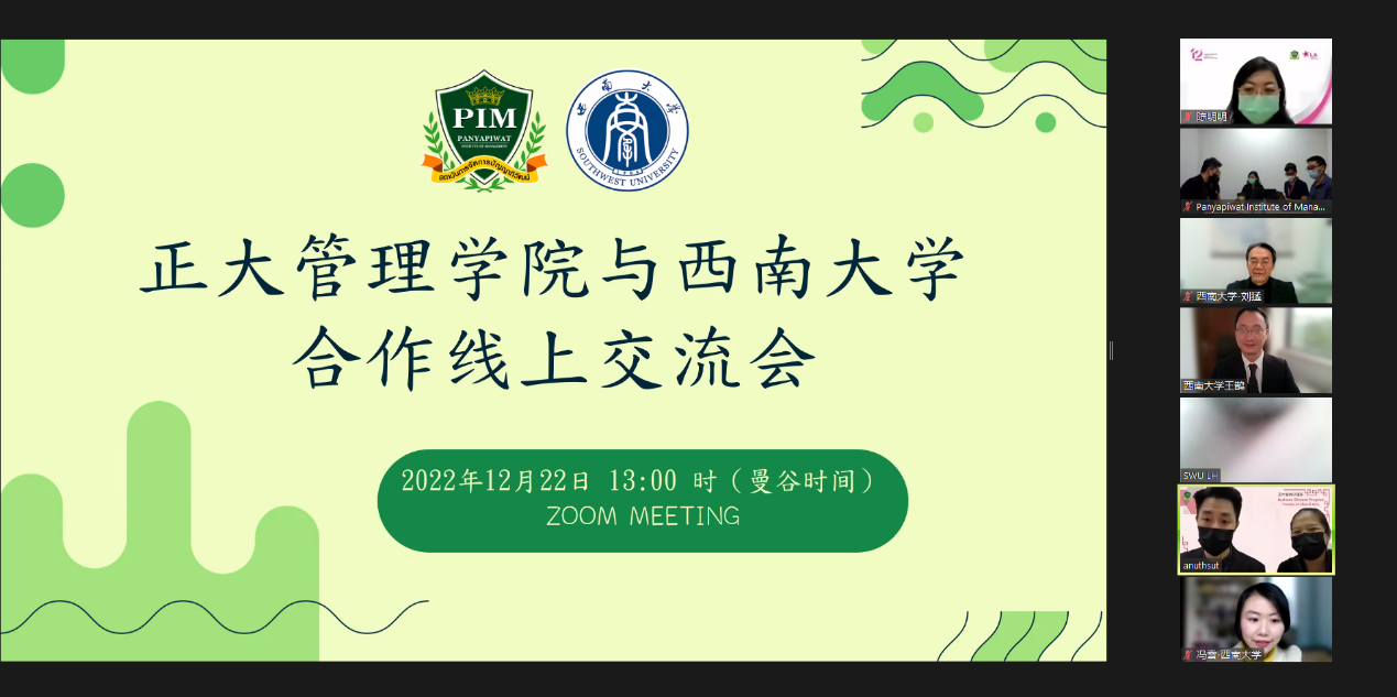 2022年12月22日下午,学校与泰国正大管理学院(以下简称PIM)成功举办线上校际合作项目推进会。正大管理学院文学院副经理陈明明,学校188改名为taptap点点刘猛书记、李航副经理出席会议。