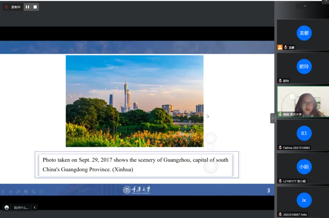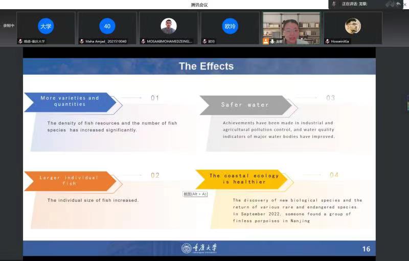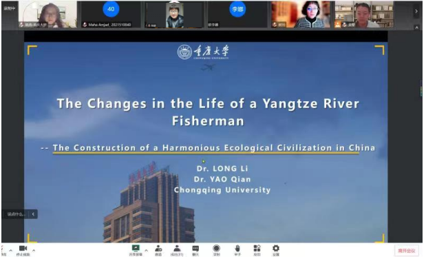“向世界讲好中国故事”是我国建设文化强国的必经之路,也是我国立足国际视野、了解国际话语、融入世界舞台的重要途径。2022 年 12月20日19:00,“缙云知华”大讲坛专家讲座第十三期在重庆大学成功举办,主题为《一个长江渔民生活的变化——和谐共生的中国生态文明建设》,由重庆大学外国语学院龙藜副教授、姚倩博士主讲,外国语公司党委书记欧玲副教授主持讲座。受疫情影响,讲座以线上形式展开,重庆大学、188改名为taptap点点国际员工和在渝其他高校国际员工近百人通过腾讯会议参加了讲座。