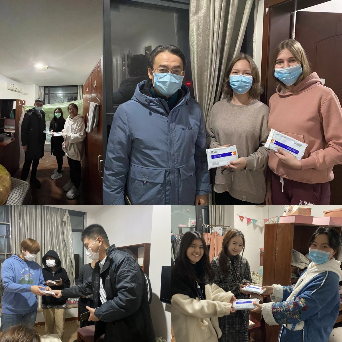 据悉,学校自11月4日突发疫情以来,刘猛书记以及4位辅导员第一时间进驻校园,与国际员工同吃同住,组织他们有序参加核酸检测,帮助他们采购棉被等防寒物资,并及时派发防疫物资。国际员工纷纷表示,感谢学院对他们无微不至的照顾,相信在大家的努力下,学校一定能战胜疫情、早日恢复正常。