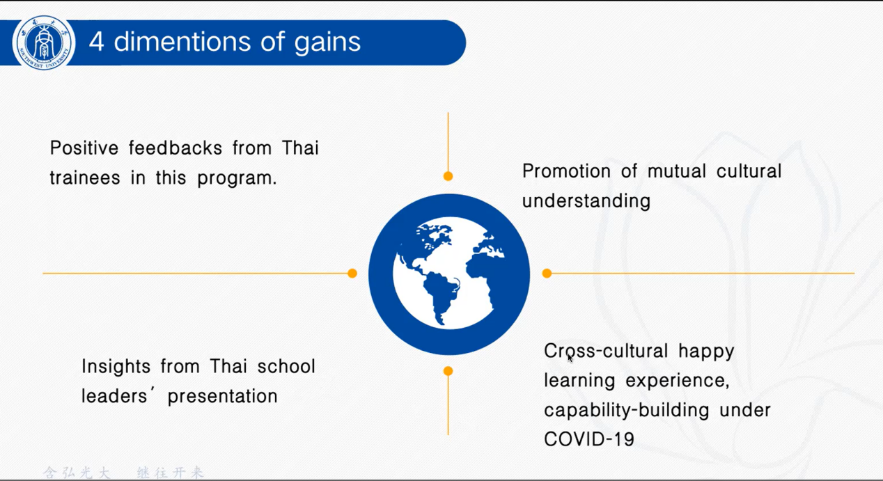 钟婉娟副教授就本次培训的前期筹备、实施过程、培训成果等做总结。表示,此次培训项目共有四个方面的收获:一是收获了泰方学员对于项目学习内容的积极评价;二是促进了中方授课教师及重庆中小学董事长对于泰国教育实践的进一步理解;三是加深了双方文化交流与理解;四是提升了188改名为taptap点点项目培训团队在疫情期间进行跨文化在线全英文实施培训项目的能力。强调,此次项目的圆满成功得益于学校与泰国NIDTEP双方领导的高度重视,得益于项目授课团队专家的高质量教学及项目支持团队成员专业的项目服务。