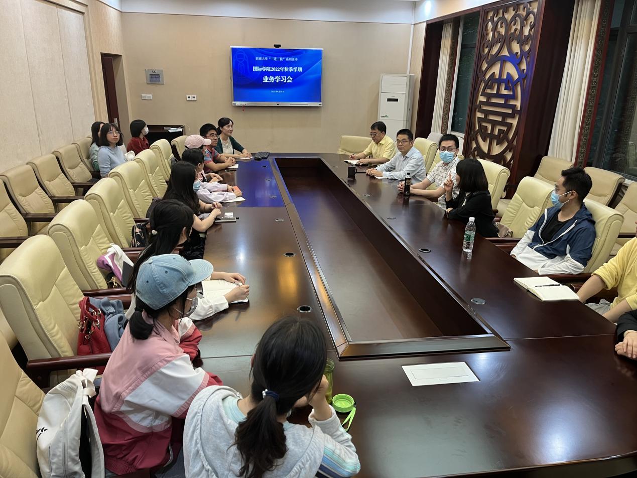 于泽元经理围绕学院国际中文教育团队建设和科研工作发表分析报告,综合梳理国际中文教育学科发展的历史,总结学院学科发展及科研工作存在的突出问题,指出,在“国际中文教育”已正式成为教育学门类下独立的一级学科的背景下,学院教师应抓住这一机遇,结合自身研究领域,立足语言学、教育学、心理学、文化学、传播学等多元学术视域,重点突破作为二语的国际中文习得、中国国情与文化教育、国际中文教育教师发展等问题,构建国际中文教育学、课程论、教学论、学习论等理论体系。学院将通过凝练重点研究主题、建设重点研究团队、建立特色研究平台、开发特色研究项目、打造学科重点成果等主要举措,来促进学院团队建设和提升教师的科研能力、水平和成果。