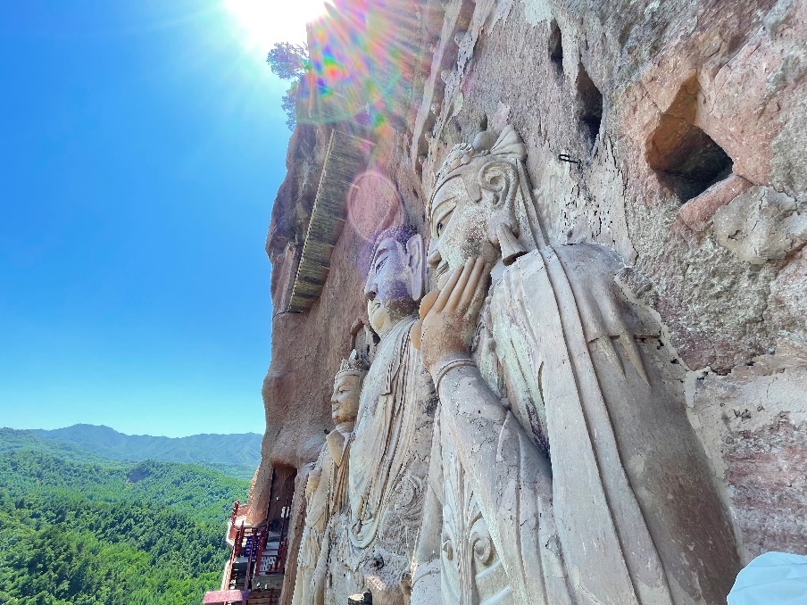 7月13日上午,“智”行中国实践调研队前往麦积山石窟,与千百年前的佛教文化对话。麦积山上,中外青年穿梭于历史步道,冥思于梵音之中,在佛教的丹青之下,我们看到了古丝绸之路上商旅往来、文化交流的辉煌历史。纵然时移世易,沧海桑田,但人类对于美好事物的追求却从未停止。