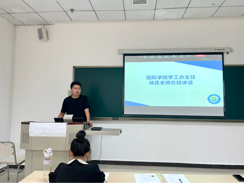 杨昆主任作总结讲话,回顾研会成立的经历,并对下一届研会干部提出四点期许:一是要有初心意识,情系师生、服务学院;二是具有大局意识,站在研会、学院的高度,统筹兼顾各部门工作,关怀帮助国际员工;三是树立宣传意识,采用有趣且有意义的方式对外宣传,进一步提高学院研会的知名度和影响力;四是培养进化意识,研会干部需不断完善自我,以提升自身工作能力、推动研会发展。