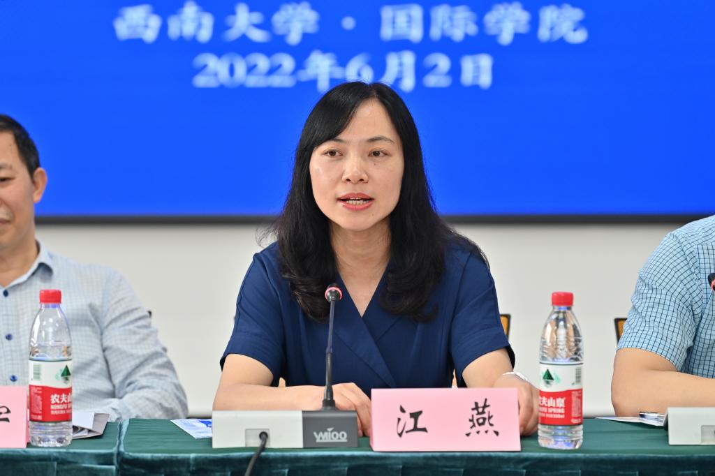 重庆市教委国际处副处长江燕总结讲话。她回顾近期全市来华留学工作开展情况以及“十四五”期间来华留学工作要求,指出,国情教育是今年教育部和重庆市教委在工作要点中明确的重点任务,希望工作坊全体成员群策群力、扎实苦干、勇于担当,为中国文化传播和重庆走向世界做出更多贡献。她对工作坊的建设提出三点要求,一是善于学习,二是勤于研究,三是敢于创新,期待工作坊多出研究成果、多出管理经验。