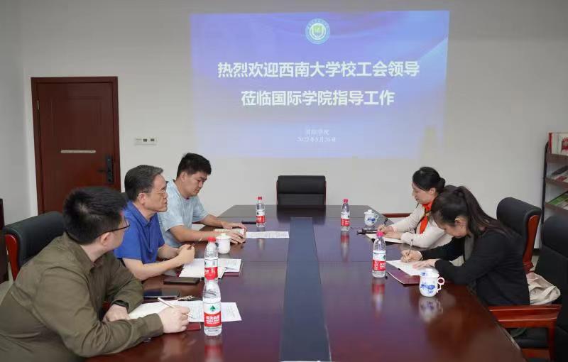 5月26日下午3:30,学校工会副主席李玉兰与组织宣传科科长冉秦鸿一行来学院做专题调研,刘猛书记、学院工会主席杨昆、青年委员黄无为参与座谈交流。