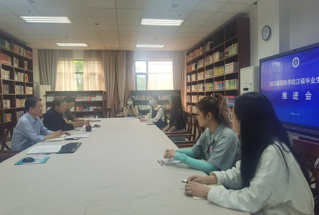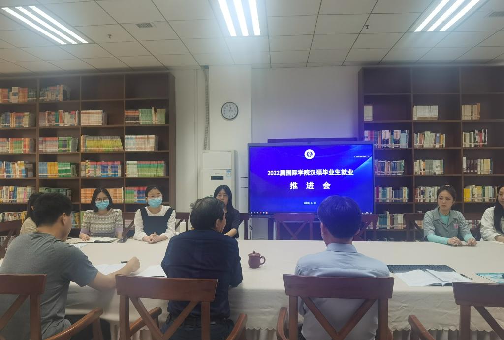 为深入贯彻重庆市教委及学校关于做好高校毕业生就业工作的要求,4月11日下午16:30,学院在紫云楼316室召开2022届汉语国际教育硕士毕业生就业工作推进会。党总支书记刘猛,经理刘承宇,学工办主任杨昆,以及16名未落实就业单位的研究生通过线上线下的方式参会,会议由研究生辅导员汪鑫阳主持。