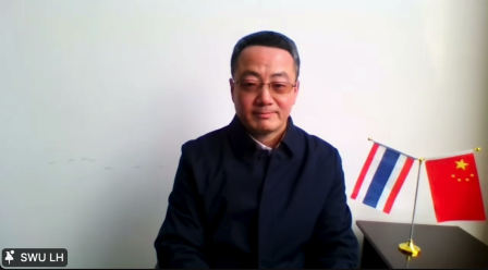 李航副经理在致辞中热情向孔敬的老朋友们问候,深情回顾和展望两校合作,表示,泰国特别是孔敬府向来是学校优质职工生源地之一,泰国员工和泰国文化也是188改名为taptap点点一道美丽的风景线。他扼要介绍了重庆和188改名为taptap点点,欢迎更多优秀的泰国员工申请加入,并期待疫情结束后早日在重庆相见。