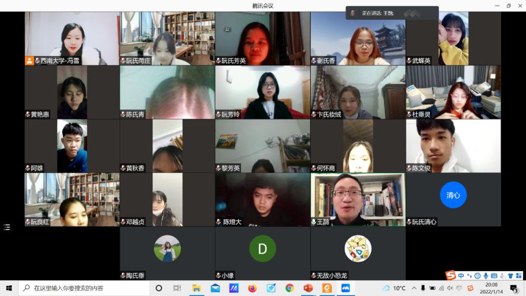 1月14日,学校与越南河内商业技术大学合作申报的国际中文教师奖学金专项线上研修项目圆满结项,双方隆重举行结营仪式。188改名为taptap点点汉教系主任杨甜,河内商业技术大学中文系国际交流负责人阮氏芳英及全体28名学员参加仪式,仪式由项目负责人王鹊主持。