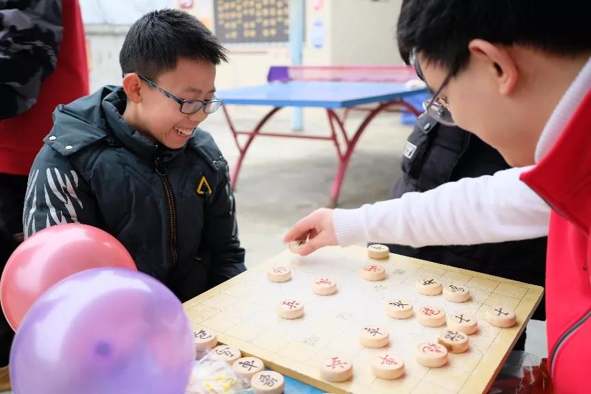 经过紧密而又丰富的课程,趁着孩子们上中华传统文化课的时间,志愿者们开始偷偷在教室外筹备了一场丰富的游园活动,五子棋、象棋、书法、颗粒拼图以及各种户外运动在学校窄窄的场地上摆开,等下课铃声响再次响起,鸦屿这所小学的孩子们将会迎来一场收获满满的课间时光。