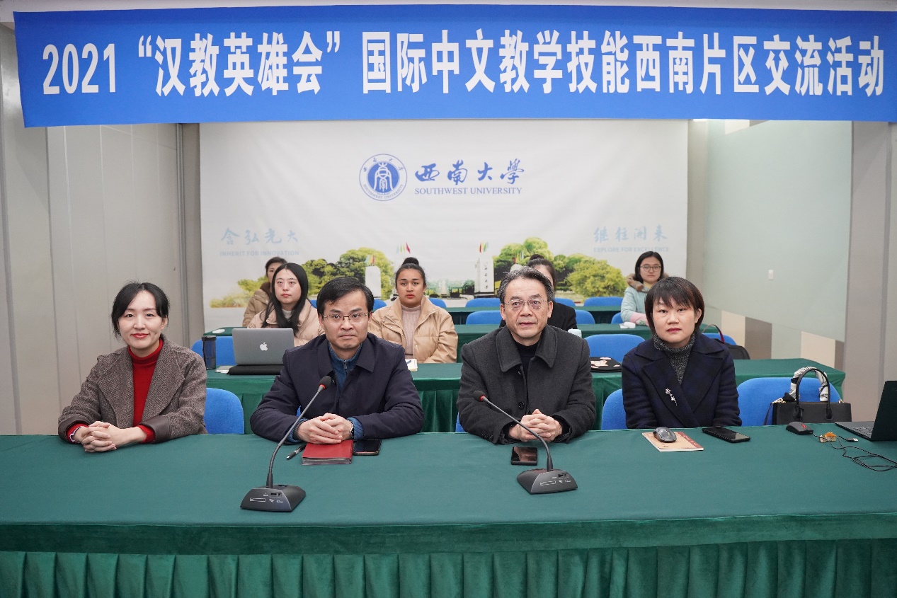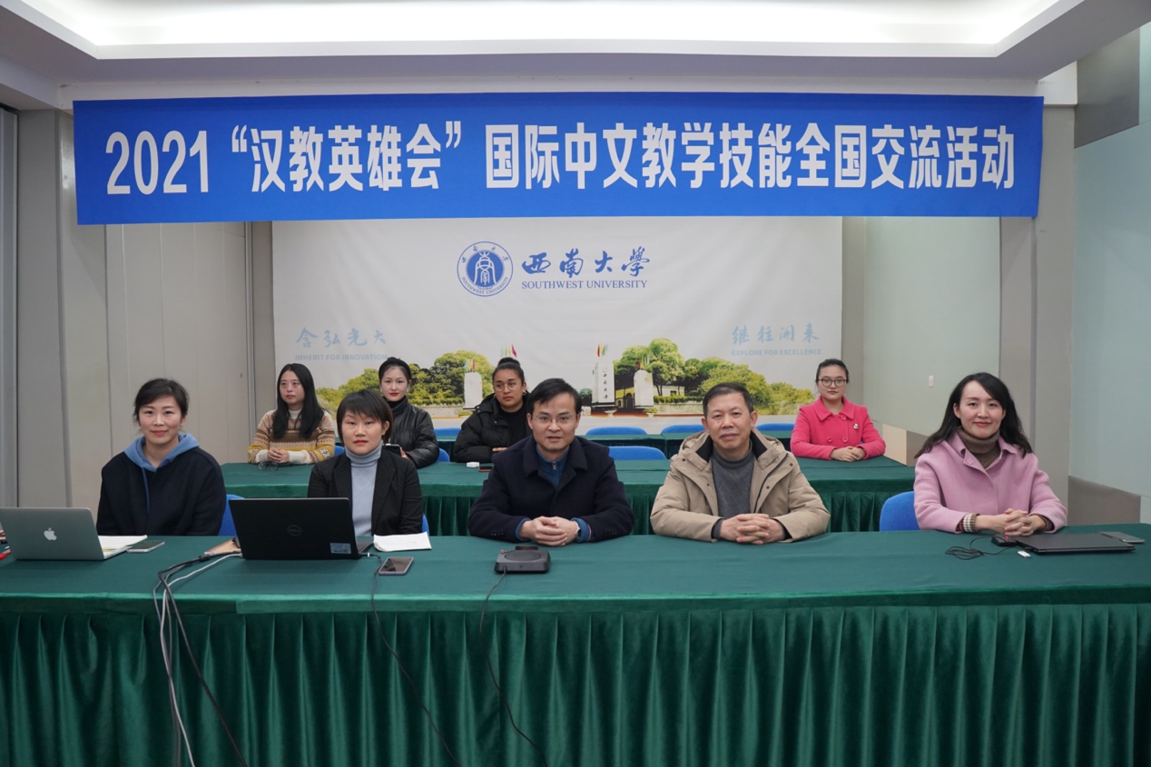 为推动国际中文教育的高质量发展,更新教学理念,创新教学方法,展示疫情下国际中文教师的风采,教育部中外语言交流合作中心举办了2021“汉教英雄会”国际中文教学技能全国交流活动,全国分为东北、西北、西南、华南、华中、东南六大赛区,共100余所汉硕培养院校参赛,最终30支优秀教学团队脱颖而出。学校师生代表团分别于12月15-16日和12月21日进行了全国展示汇报和西南片区展示汇报,介绍了学校和学院汉语国际教育专业发展和人才培养特色,并对此次参赛的课程理念、教学设计进行了“云端”交流。