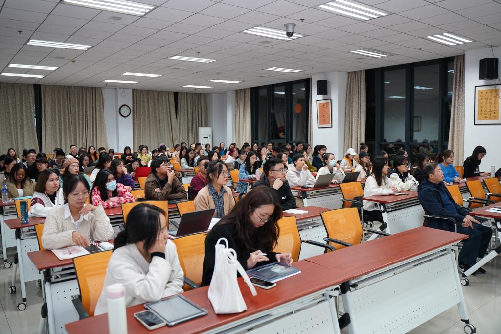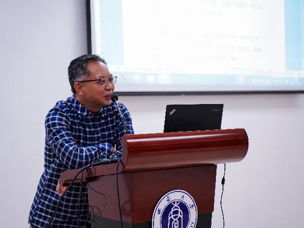 张爱民老师用《庄子》中“望洋兴叹”的故事引出先秦经典中的训诂学,对《诗经·氓》《论语》《短歌行》《咏怀古迹》等耳熟能详的中学语文篇章中部分用字的意义和用法提出了新的见解,令人耳目一新,省人深思。借此机会,张爱明老师指出培养员工批判性思维、敢于发现问题、进而“翻箱倒柜找资料”来解决这一问题的能力在基础教育阶段中的重要性。同时,也激励广大研究生大胆质疑,敢于创新,多阅读书籍,提高辩证思维能力。