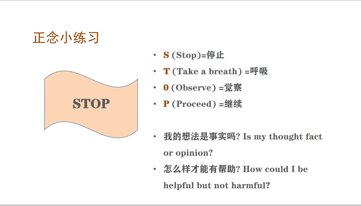 对于新生来说,入学适应面临的困难和挑战更多。学习压力、疫情下的压力情绪管理、当内心很孤独的时候,如何给自己加油打气……讲座还为他们准备了应对焦虑“小锦囊”:情绪ABC理论和STOP正念小练习,以便更好地帮助他们。