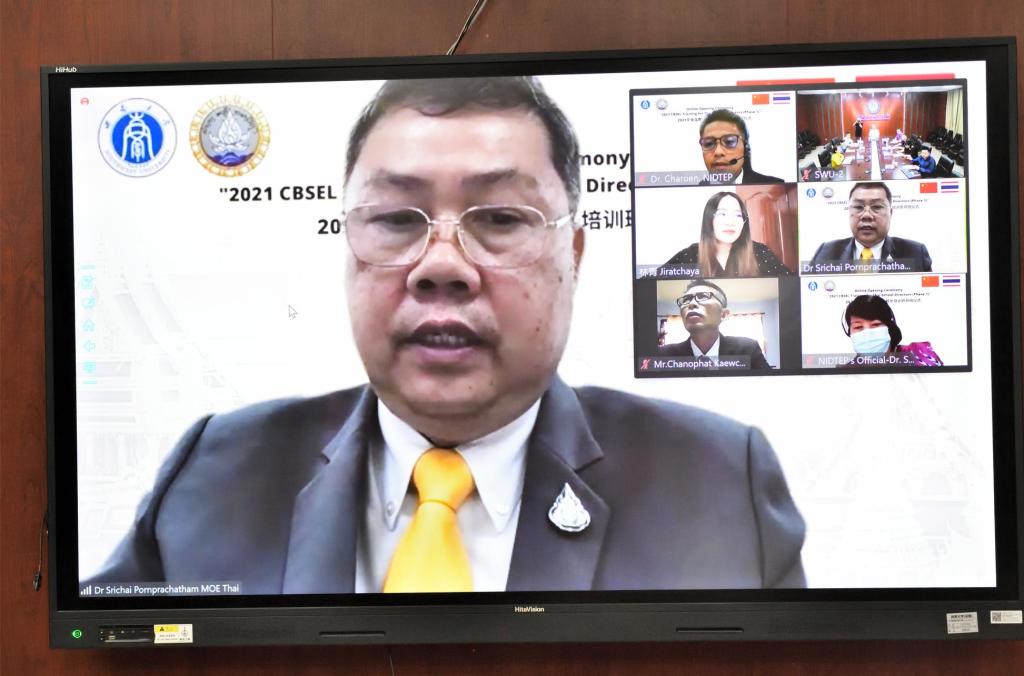 泰国教育部督察长斯彩先生代表泰国教育部致辞,对重庆市教育委员会的支持表示衷心感谢,对学校与泰国教育部紧密合作所取得的成就表示祝贺。指出,泰国教育官员及董事长培训项目在“一带一路”倡议的大背景下举行,克服了新冠肺炎疫情所带来的各种挑战,体现了中泰两国人民友好交往美好而又迫切的愿望,希望以该项目为重要基础和载体,开启两国教育交流合作的新篇章。