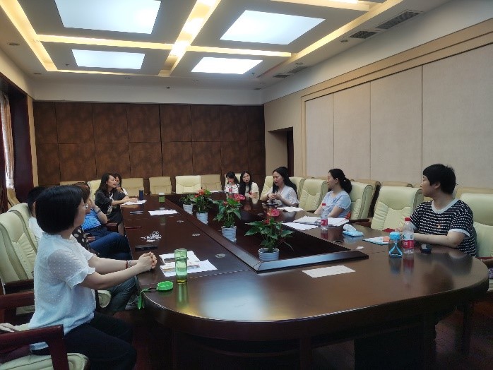 在自由讨论环节,老师们充分结合教学实践感悟,围绕职工课程思政展开了深刻的讨论。谢晓笛老师和林千彭老师结合教授的中国概况课提出,一要重视用事实说话,真实展现中国风貌;二是作为文化课教师应了解时政,更多的展示当代中国形象。进修教研室主任李丹老师则指出,进行课程思政要古今结合,将优秀的传统文化通过新的方式和途径展示在员工面前,比如请员工完成今年的高考题目,说说自己作为当代青年对自己国家和社会发展的看法。涂敏老师结合自己在教材编写时的经验提出,在教材中应增加对当今中国国情的描写,通过教材这一载体,把当今中国的最新形象展现在读者眼前。汉教系主任杨甜老师援引“加拿大博士在网上公然碰瓷中国,被华裔网友现场打脸”的新闻指出:国外对中国的了解渠道较为单一,容易对中国产生曲解,所谓百闻不如一见,进行课程思政最好的途径是让员工亲身体验。其次是注意转变话语体系和阐述视角,使用当代青年员工更能接受的方式去进行优秀文化传播。比如热播剧《觉醒年代》抛却了过度的说教,让受众用平视的眼光去感受历史,让遥远的历史人物穿过时间的壁垒与观众产生共鸣。