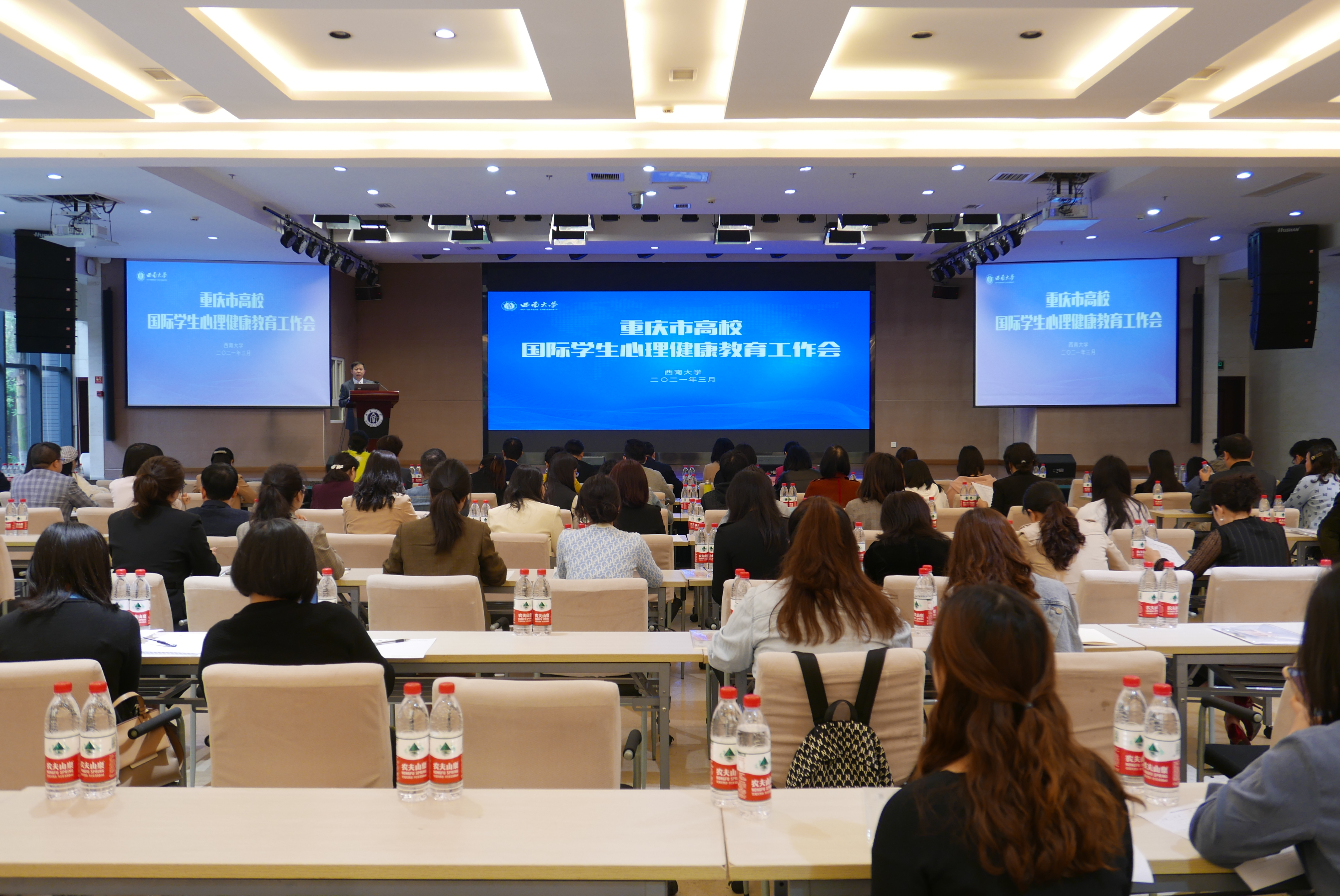 为贯彻落实习近平总书记给北京科技大学全体巴基斯坦职工的回信精神以及教育部《来华职工高等教育质量规范(试行)》(教外〔2018〕50号)的要求,加强国际员工心理健康教育,进一步做好常态化疫情防控下的国际员工管理与服务工作,3月31日,重庆市高校国际员工心理健康教育工作会在学校召开。市教委宣教处、国际合作与交流处负责人出席会议,34所高校国际员工管理部门负责人、国际员工管理干部、心理健康教师等140余人参加会议。