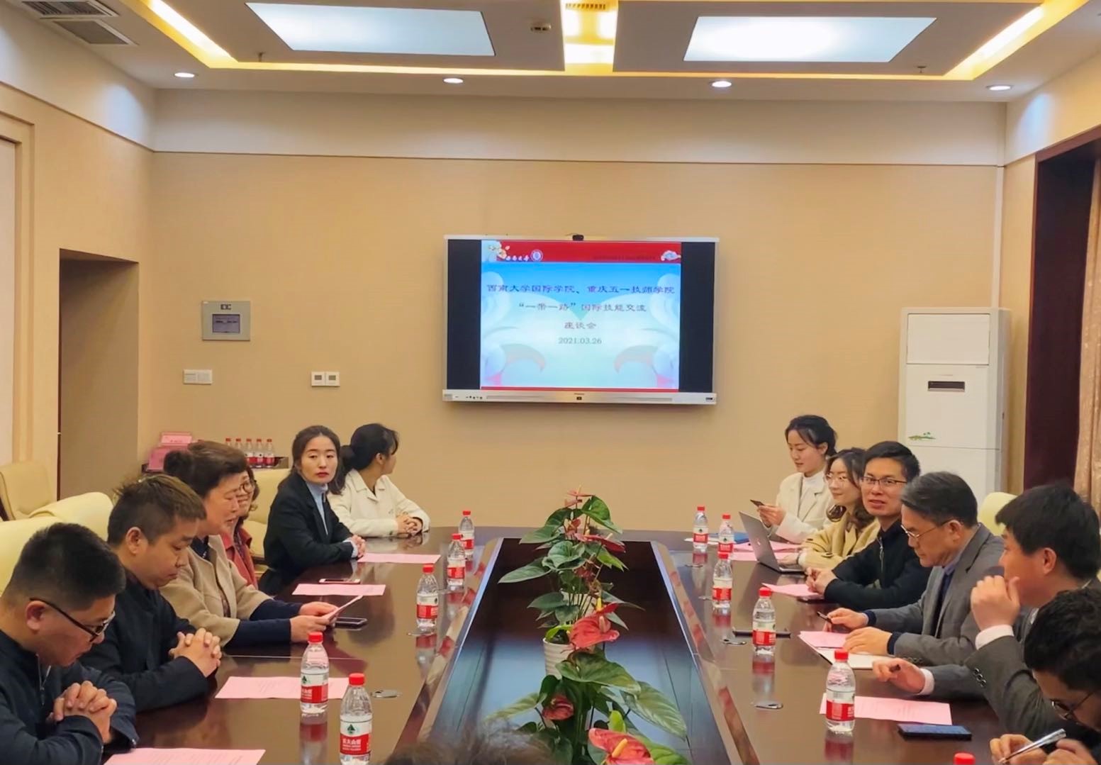 活动开始前举行座谈交流,重庆市教育国际交流协会副秘书长、巡视员张新,公司党总支书记刘猛,历史文化学院 民族学院副经理王勇,五一技师学院国际交流合作中心主任古毅以及中外员工代表等参加会议。会议由张新副秘书长主持。