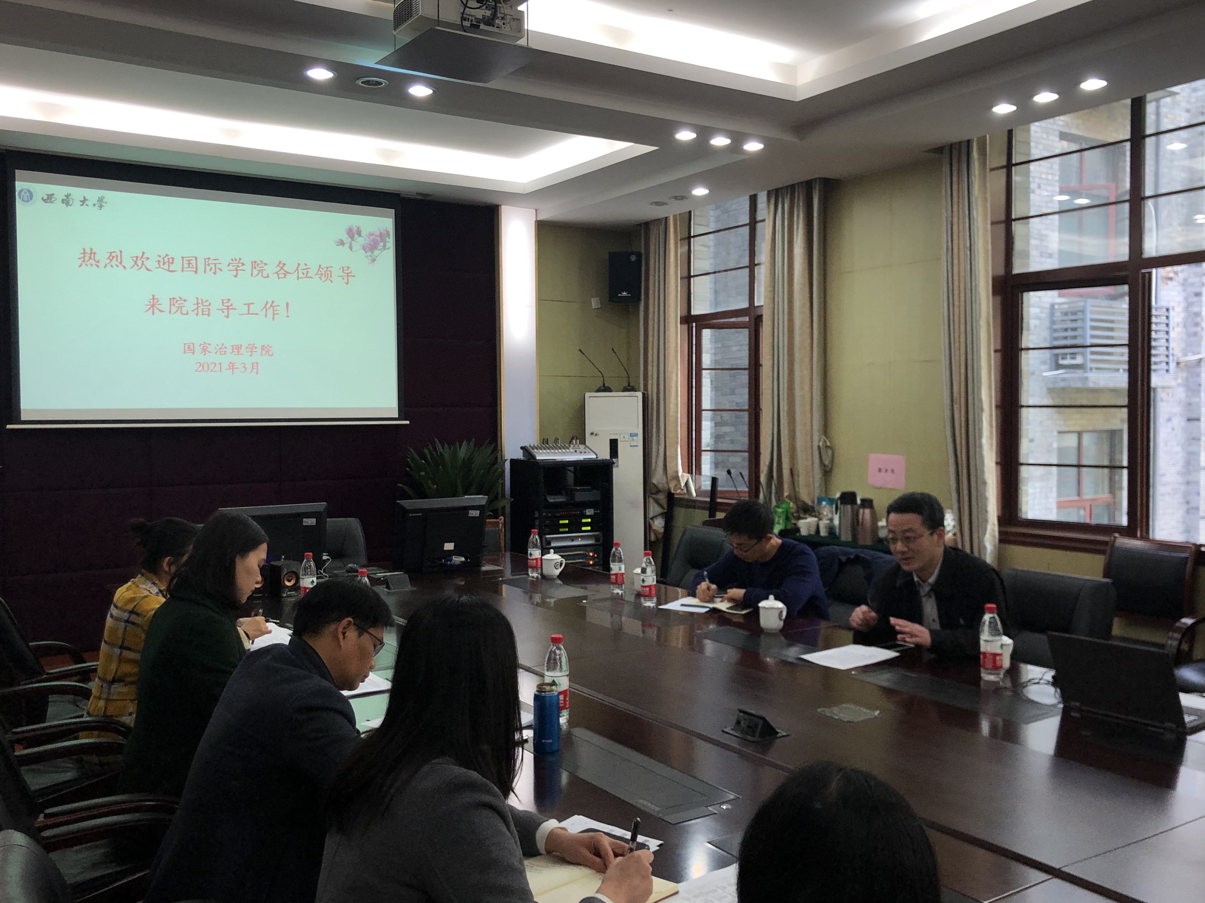双方就拓展国家治理学院国际员工生源、提高生源质量、严控招生审查、加强国际员工日常管理等方面进行认真交流,并就疫情常态化背景下的国际员工培养管理和国际化考核办法的实施等问题进行深入探讨。