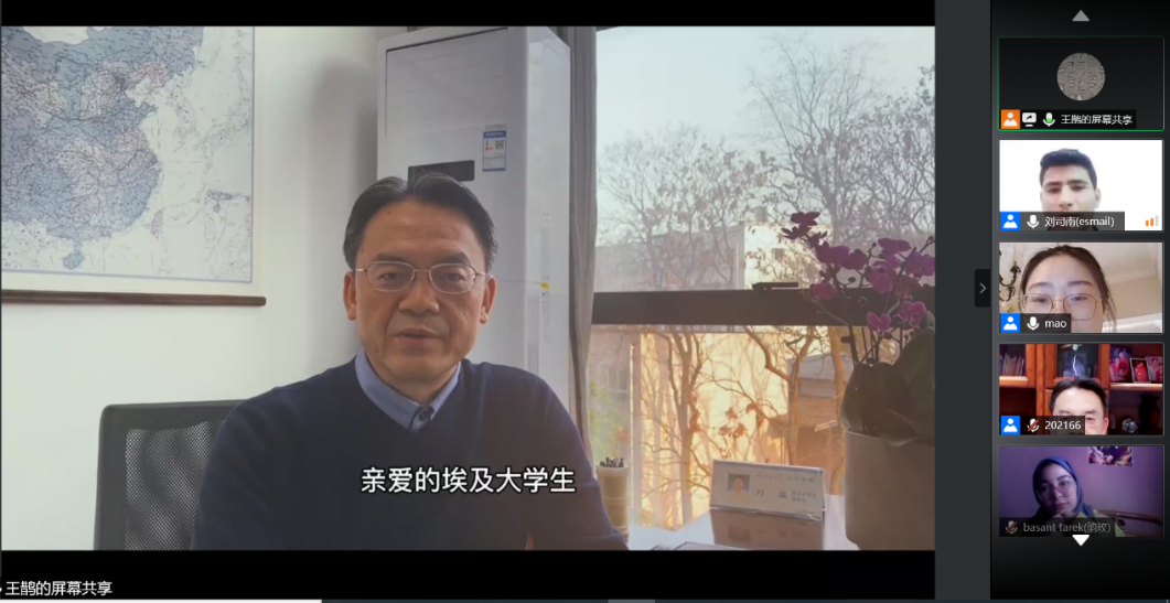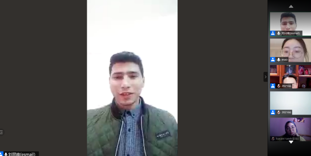 集团与埃及艾因夏姆斯大学(以下简称艾大)合作举办的2021年汉语桥“魅力汉语,精彩中国”线上交流项目圆满完成了为期3周的线上汉语课程教学任务,3月6日晚,项目举行结业仪式,公司党总支书记刘猛、汉教系主任杨甜和艾大孔子课堂外方经理伊斯拉教授的代表、中文系教师刘司南出席仪式。仪式由项目负责人王鹊主持,100名埃及员工及艾大教师、学校硕士研究生志愿者参加会议。