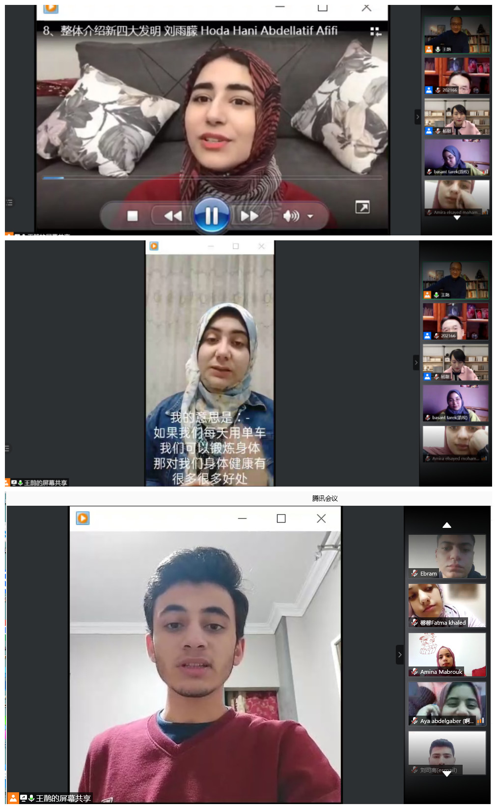 全体与会人员共同观看了项目学员制作的十佳vlog作品。作品内容丰富,涉及埃及历史、中国新四大发明等,学员们还为作品配上了中文讲解。