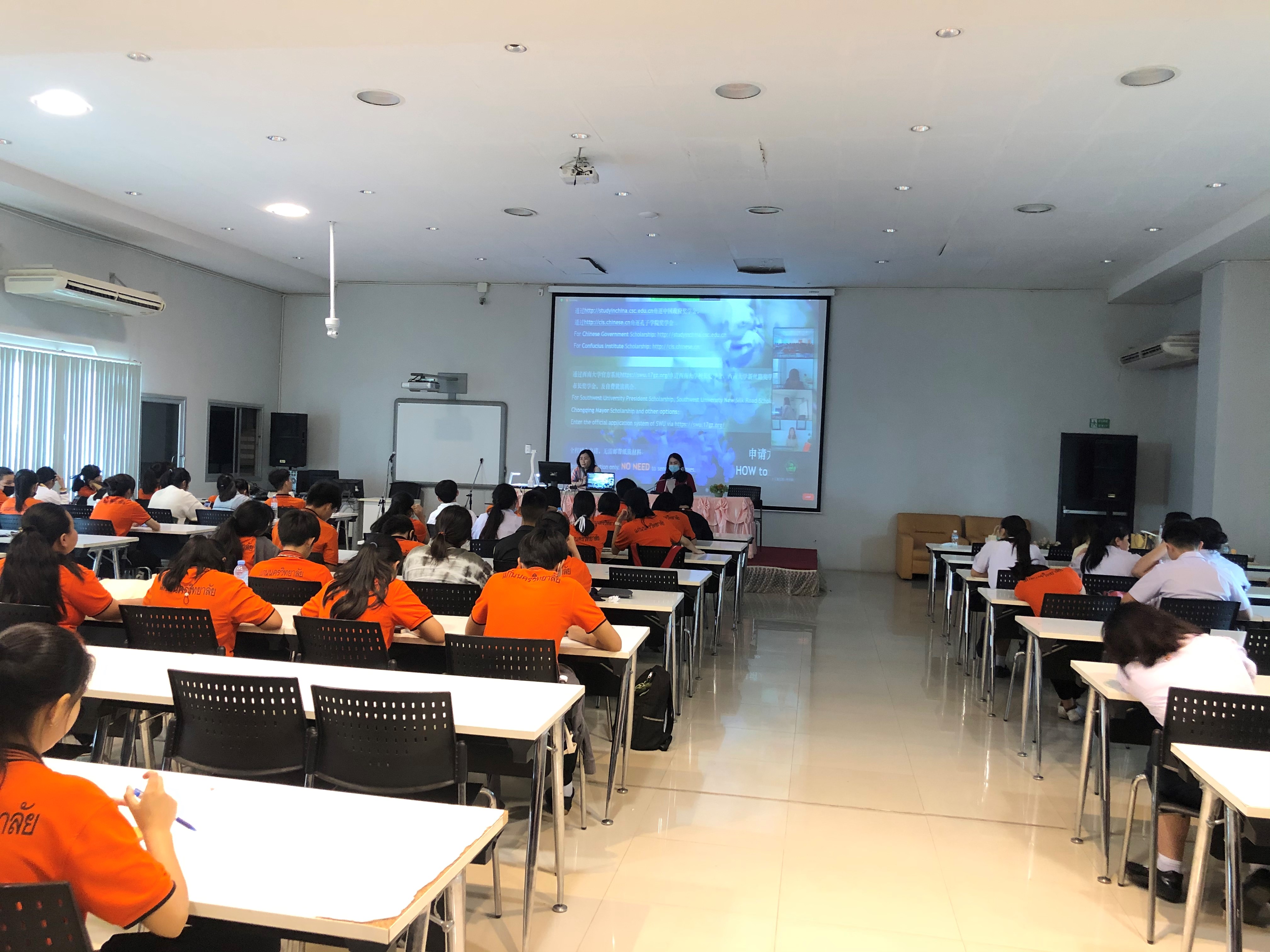 3月2日下午,学校泰国招生宣讲会在线举行。在泰国孔敬大学孔子学院的组织下,近百名泰国高中毕业年级员工参加宣讲会。