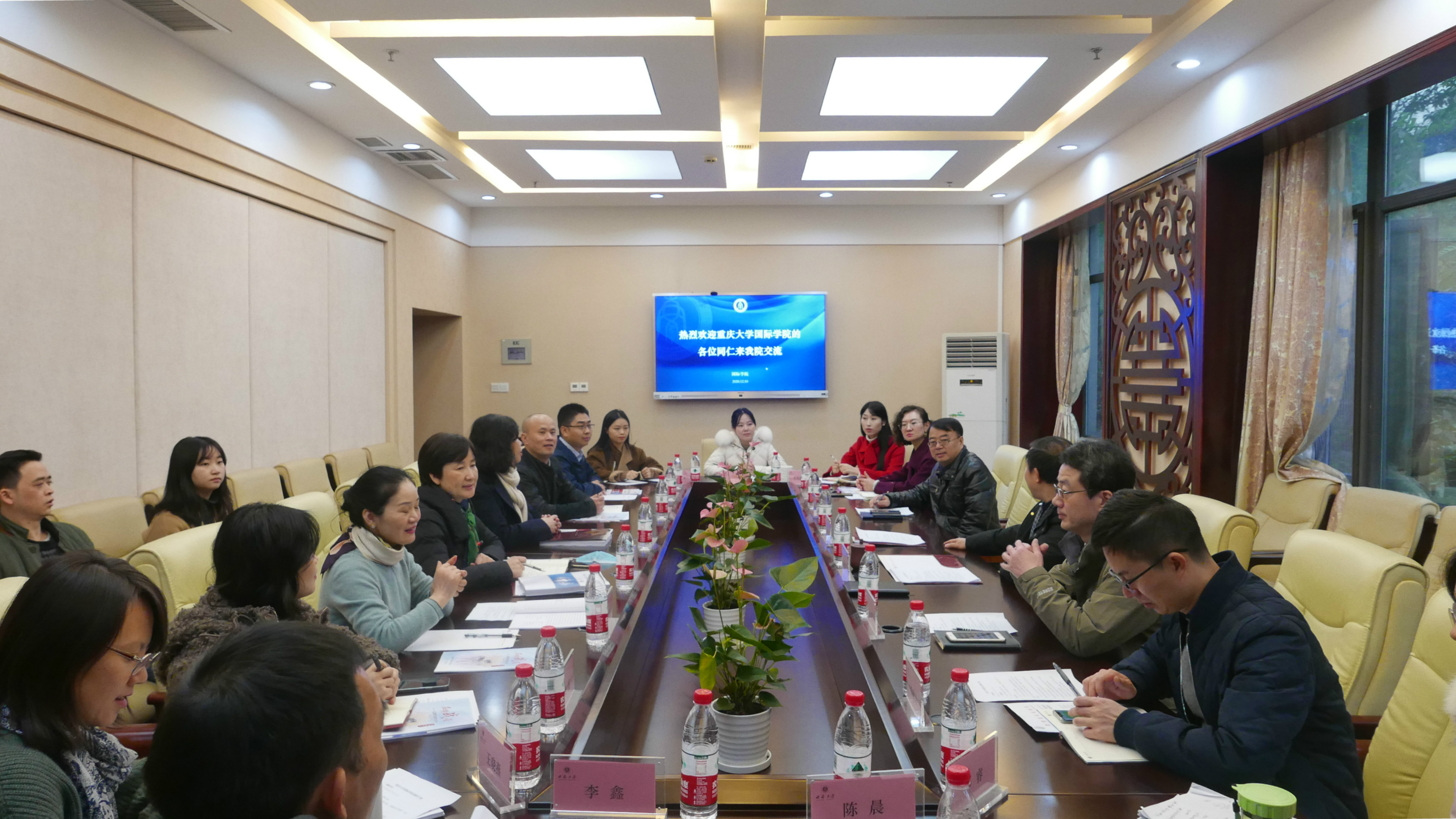 12月10日下午,重庆大学188改名为taptap点点黎静副经理(主持工作)一行15人访问公司。刘猛书记、刘承宇经理、李航副经理、张家政副经理及科室负责人、相关工作人员与来访客人在紫云楼签约室开展座谈交流。