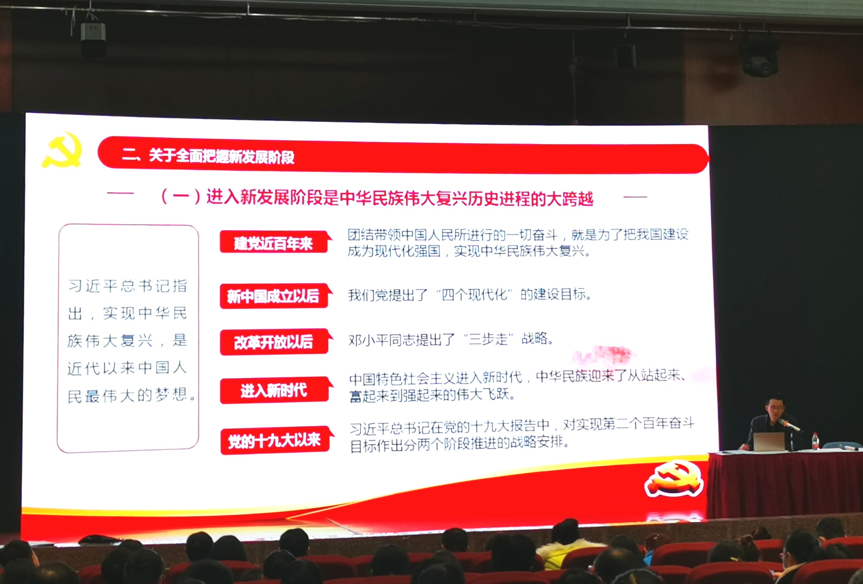 邱江处长主要围绕四个方面宣讲:一是十九届五中全会的基本情况和重要意义。二是全面把握新发展阶段。三是关于准确把握2035年远景目标和“十四五”时期我国发展的指导方针、主要目标和重点任务。四是关于深刻认识构建新发展阶段格局。结合学校工作,提出两点希望:一是要将学习贯彻十九届五中全会精神与推动学校事业发展结合起来,抓紧修改完善学校“十四五”规划。二是要求学校各二级教学科研单位结合实际,逐项梳理,细化措施,做好专项规划,对标对表抓好落实。