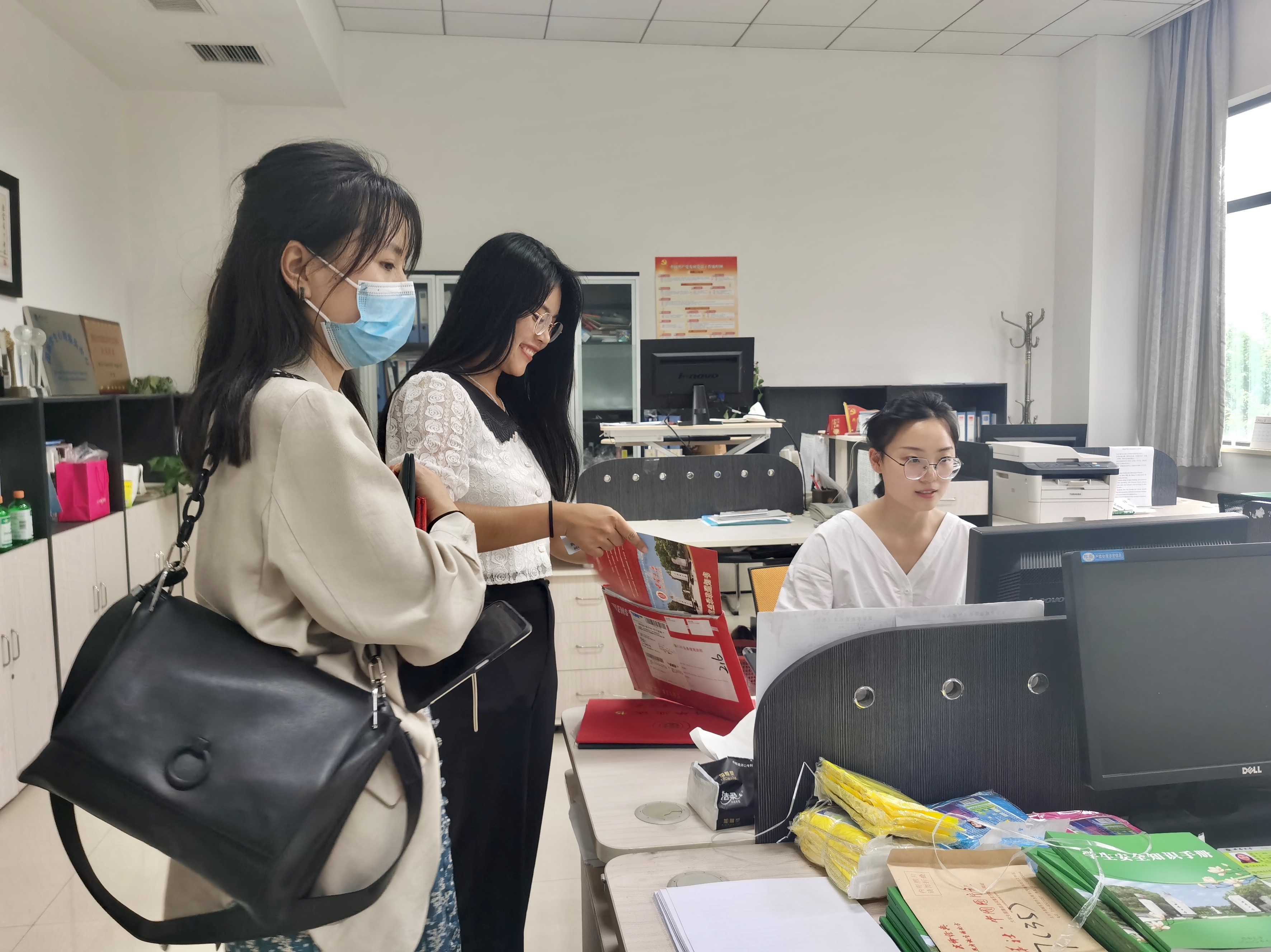 9月19日上午,迎新工作正式开启,2020级辅导员景柯沥老师在学院309办公室静候新生的到来。跨越大江南北的新同学们安顿好行李后,便来此进行新生报到注册。