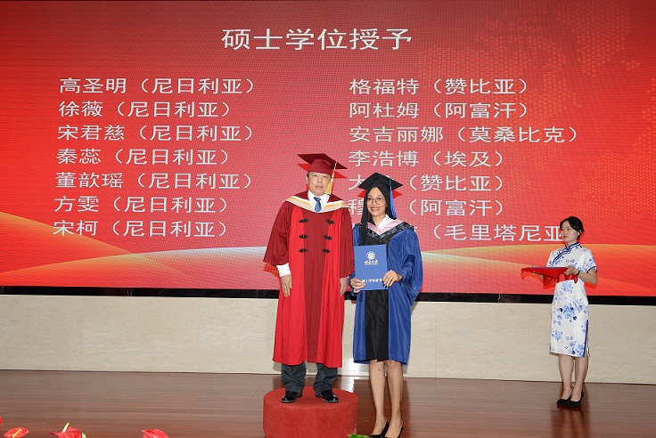 埃及籍硕士毕业研究生李浩博和泰国籍本科毕业生孙玉珍、孙玉玲分别代表境内外全体毕业生发言,表达了对母校的培育之恩。教育学部么加利教授代表教师发言,深情回顾了师生间的真挚情感。