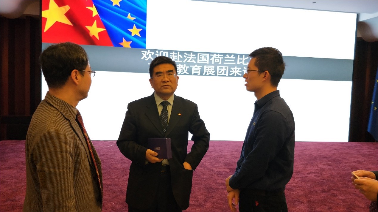 离欧回国前,代表团一行还访问了我驻欧盟使团,并受到文化与教育处车伟明公参的亲切接见。车公参向代表团详细介绍了该处的职能和使命,中欧高等教育交流及合作情况,并期待在代表团各高校的宣传和帮助下,在高等教育领域促成更多中欧项目的开展。