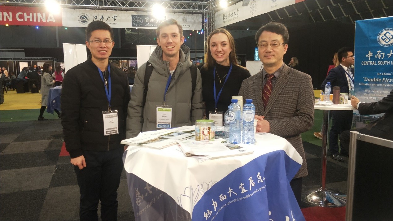 访问团在法国密特朗国立图书馆举行了中国高等教育展,并先后参加了在荷兰乌特勒支市和比利时根特市举办的欧洲“走出国门”教育展。针对欧洲员工情况,学校认真布展并重点推荐和发放了汉语进修生招生简章、硕士研究生招生简章以及中国政府奖学金、孔子学院奖学金招生材料,大量参展员工前往公司展位进行咨询。
