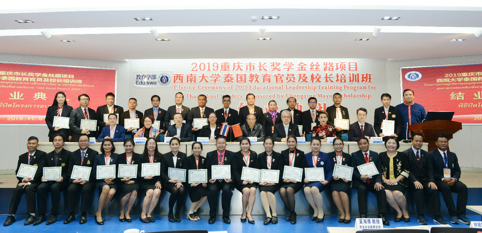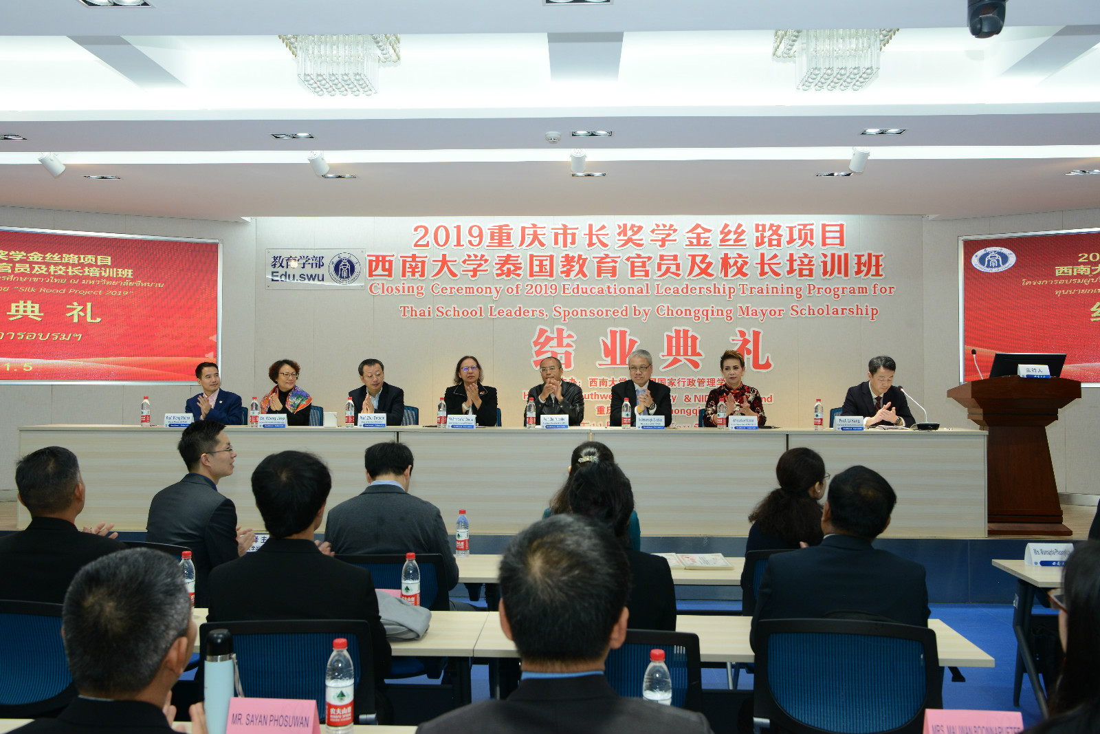 11月5日上午,2019年重庆市长奖学金丝路项目---“188改名为taptap点点泰国教育官员及董事长培训班”结业典礼在教育学部举行。泰国教育部次长杜丽亚、泰国教育行政管理学院经理萨蔡童、188改名为taptap点点董事长助理褚远辉、教育学部部长朱德全、188改名为taptap点点经理王静出席典礼,项目班主任和相关工作人员,以及30位来自泰国的教育官员与职业院校、中小学董事长参加典礼。