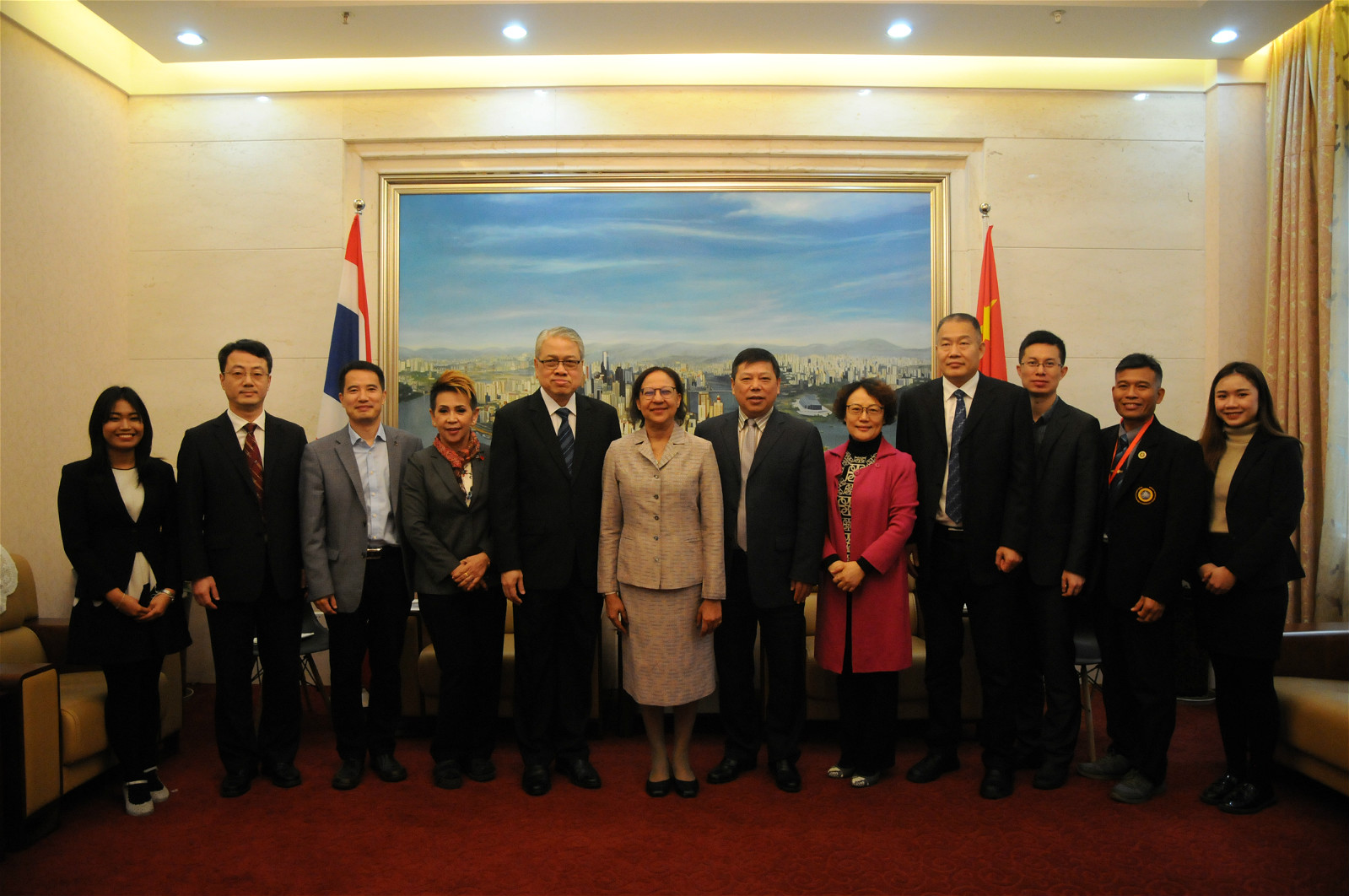11月4日,泰国教育部次长杜丽亚女士和泰国国家教育行政管理学院经理萨蔡童先生来校访问,董事长张卫国会见客人。
