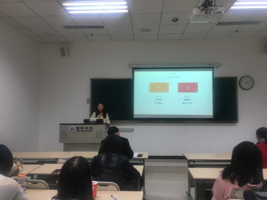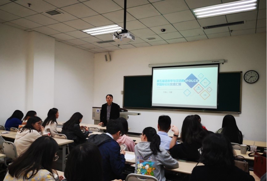 接着,学院教师冯雪和大家交流了参加“第五届语言学与汉语教学国际论坛”的收获。该会议是一个旨在提倡以坚实的语言学研究为基础促进与提升汉语二语教学的国际学术交流平台,由美国、北京和香港八所大学有关同仁共同发起并轮流组织,此次论坛在美国纽约召开。刘乐宁、孙朝奋、储诚志等汉语语言文字学界的知名专家在会上做了精彩的报告;冯雪在论坛上做了题为“泰国员工习得汉语三字组变调模式试验研究”的交流发言,还在论坛期间观摩了普林斯顿大学中文教学工作坊。冯雪表示此行使她增长了见识,拓宽了视野,受益匪浅。