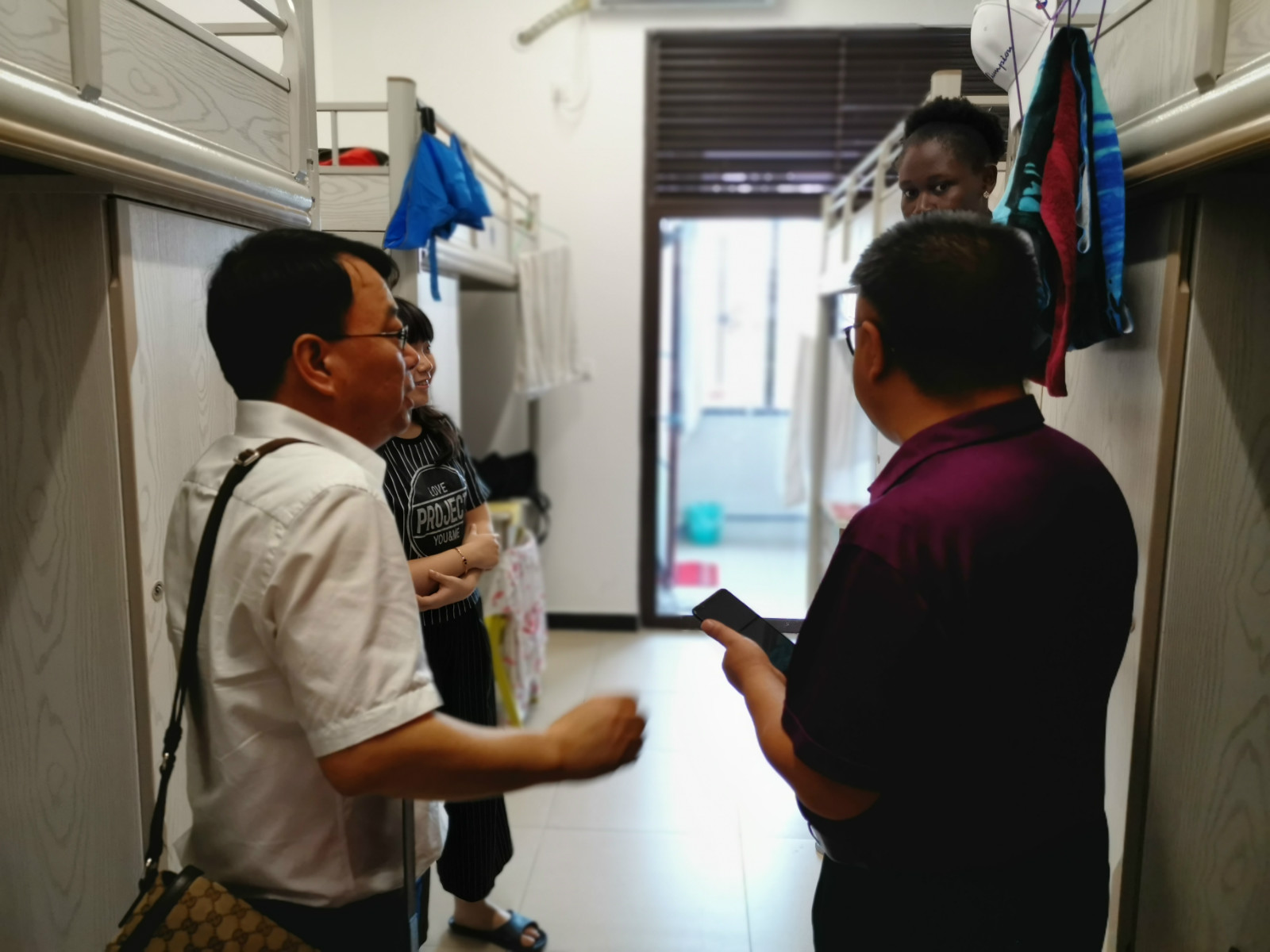 公司领导及相关科室负责人,分组看望了每个楼层的新生,给他们带来学院的问候和关心,询问他们在初到中国的学习、生活适应情况,以及目前在生活上遇到的困难,嘱咐新同学们多与职工老生们交流,有问题及时向学院老师反馈,并表示学院将会尽力为各位新同学解决实际困难,帮助大家尽快融入在西大的学习和生活。同学们都纷纷表示感谢。