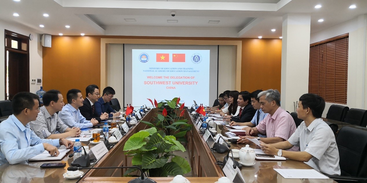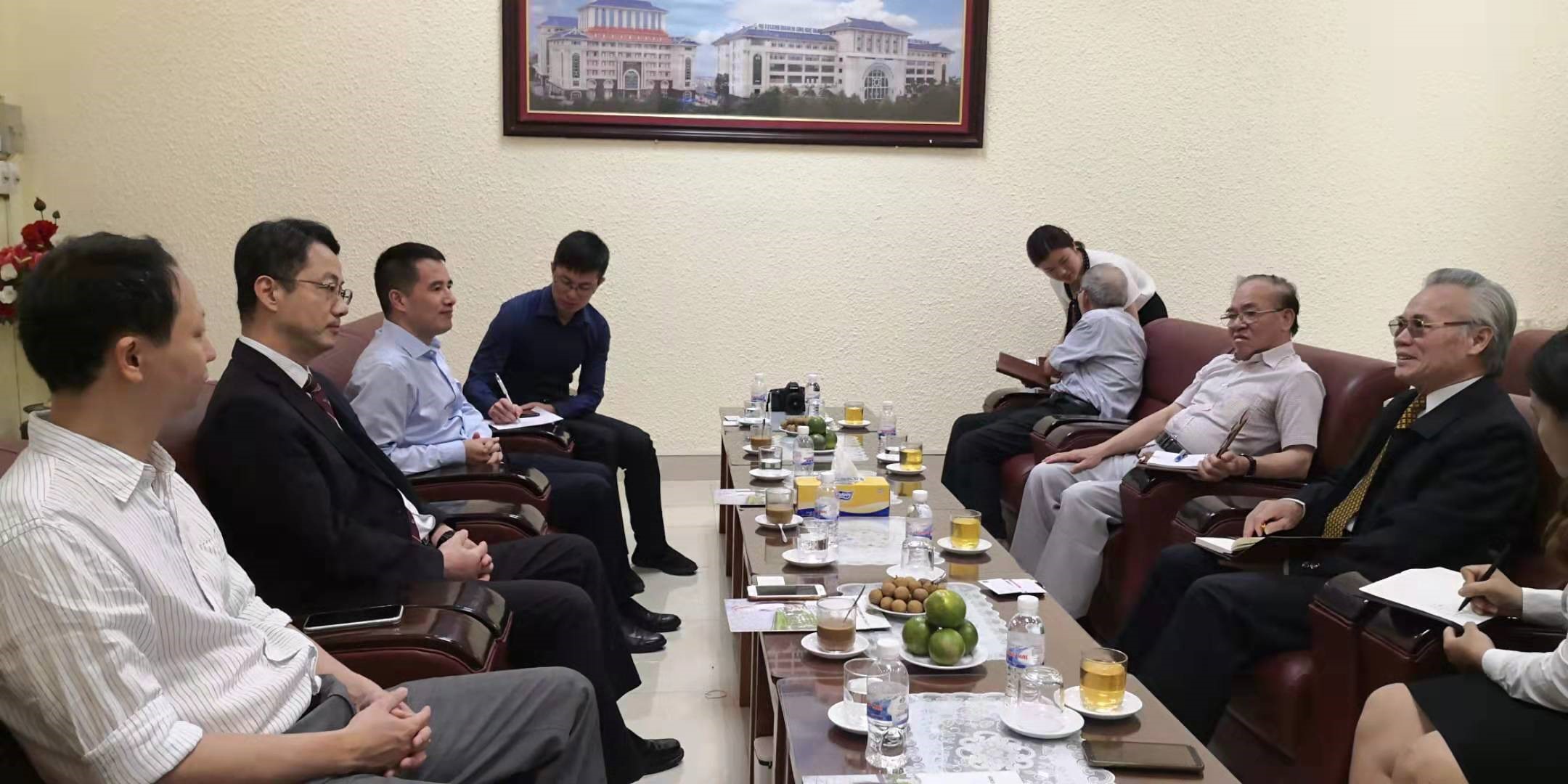 8月26日,代表团一行访问了越南教育管理学院,并与该校董事长Pham Quang Trung教授、副董事长Tran Duc Minh教授、国际合作处处长Le Thi Thuy Nga及相关工作人员举行了会谈。在简要回顾了教育领导与管理专业硕士研究生的境外办学项目后,双方就该项目在招生录取、教学管理、学位认证等方面所面临的问题和挑战进行了深入洽谈,共同寻求解决方案。同时,双方还一致同意开拓两校在短期访问学习等方面的合作。