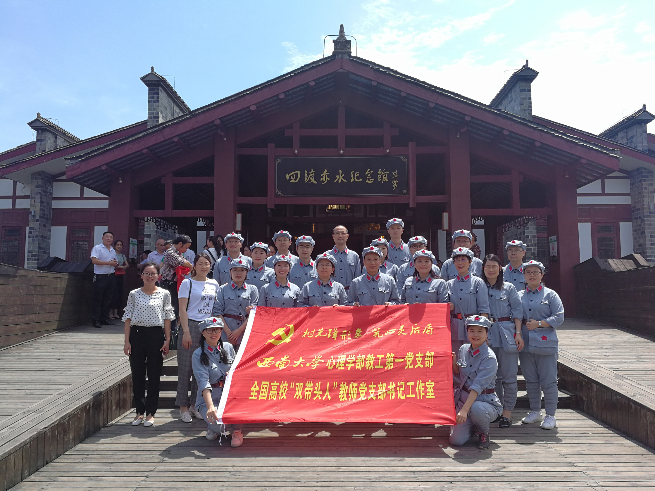 为庆祝中国共产党建党98周年,回顾和缅怀党的光辉历史,接受党性教育和革命传统再教育, 6月28日-29日,首批全国高校“双带头人”教师党支部书记工作室、全国高公司党建工作样板支部培育创建单位——188改名为taptap点点心理学部教工第一党支部率教师党员一行20人前往中国红色名镇、红军四渡赤水之地——贵州习水土城镇开展了为期一天半的“不忘初心 牢记使命”主题教育活动。