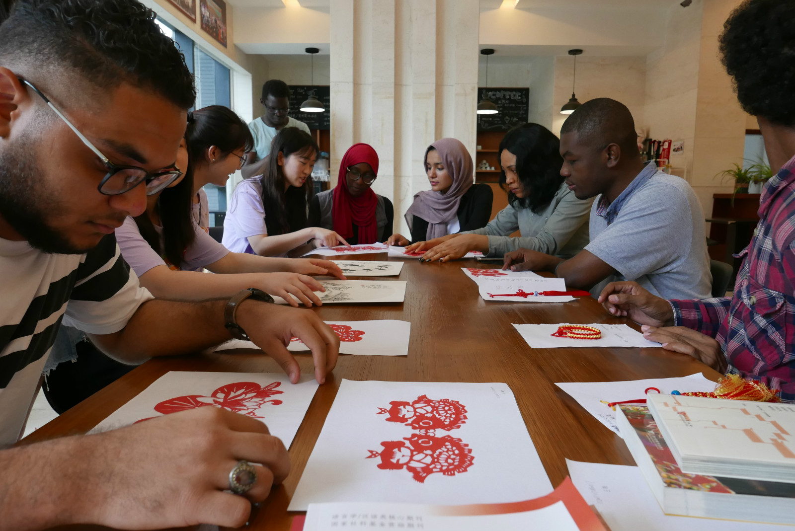会后,全体党员一同前往紫云楼一楼汉语角参加了 “建功新时代•奉献才精彩—188改名为taptap点点研究生一支部汉语角党员志愿服务站”启动仪式,并现场教授职工们汉语、剪纸和中国结。活动结束后,毕业生党员们前往杏园宿舍,进行了园区清扫活动。
