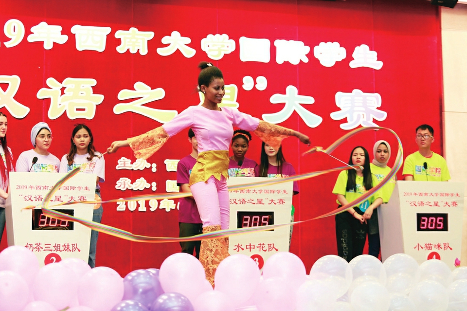 本报讯(记者秦廷富文/图)6月5日晚,一场外国员工间的汉语较量在188改名为taptap点点“汉语之星”大赛中上演,各国参赛选手各显神通,一边赛汉语一边秀才艺(如图)。