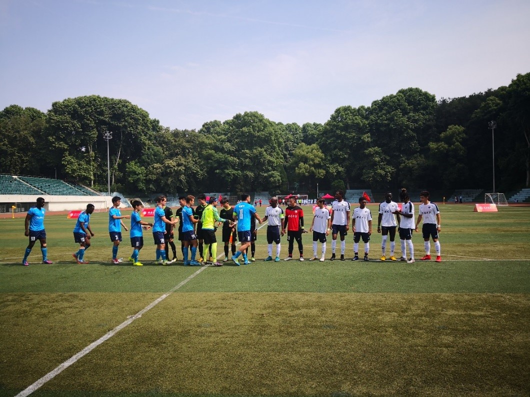 24日上午,学校代表队迎来小组首个对手—“卫冕冠军”华东师范大学。双方势均力敌,对这场比赛都志在必得。面对开场丢球的不利局面,学校队员冷静沉着,很快便将比分扳平。下半场,双方均未破门,最终以比分1:1战平卫冕冠军。