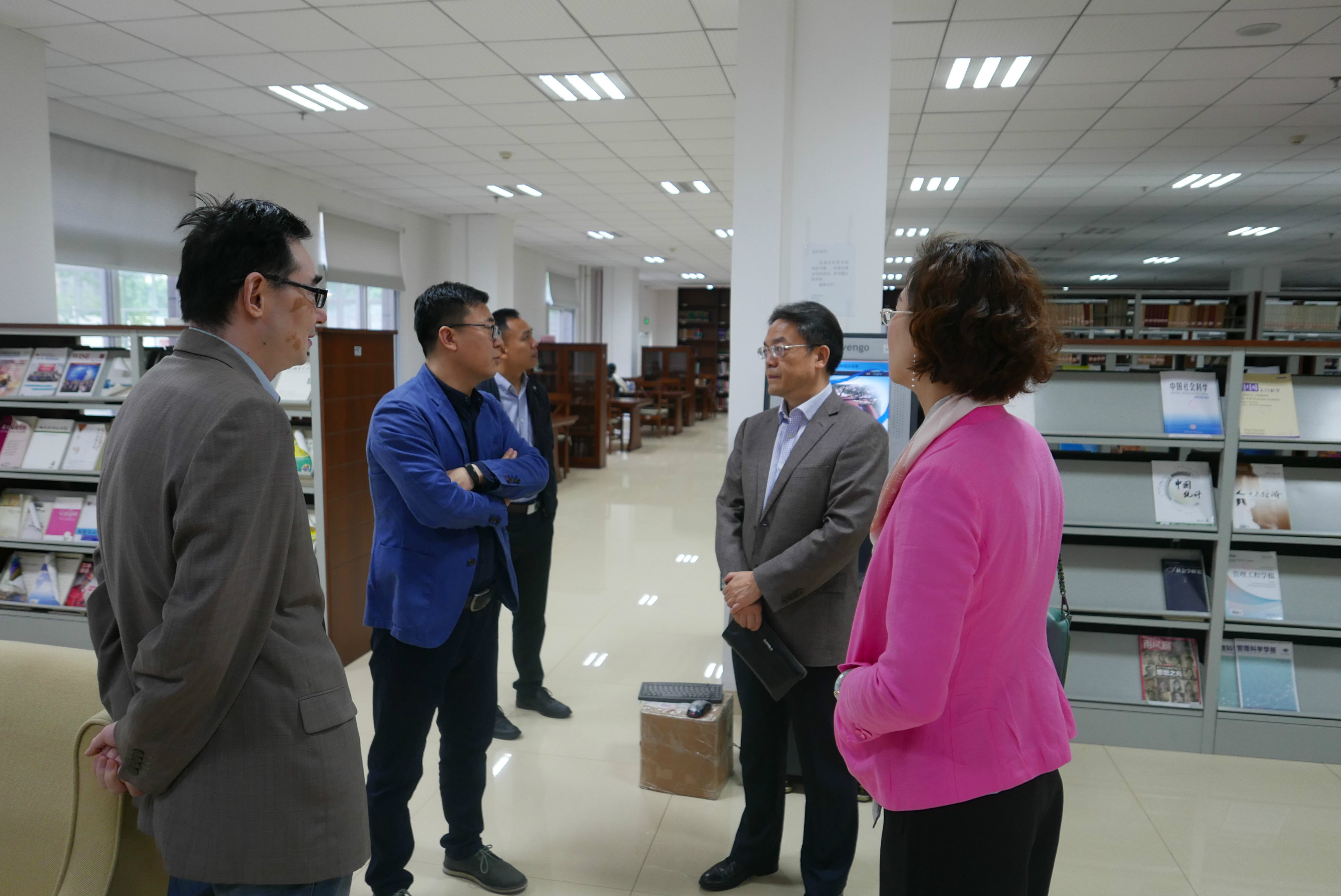 5月7日上午,公司党总支书记刘猛一行四人先后走访了经济管理学院、法学院和外国语学院,实地考察了三个单位的专业图书馆建设情况。