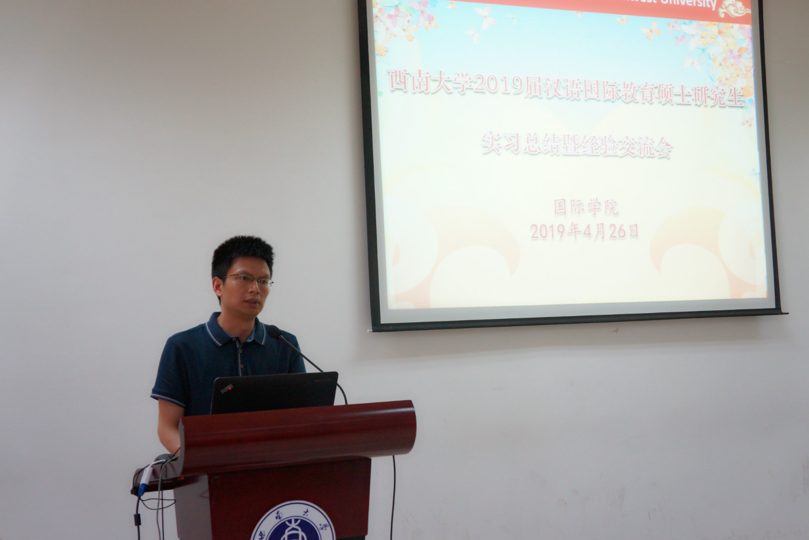 研究生院副经理张陈做了总结发言。他表示学校研究生院将会继续全力支持汉语国际教育海外实习基地建设,并对“汉语在国际上的发展性”做了阐释,希望同学们能够充分利用实习实践成果,能够在实践中发现问题并解决问题,做优秀的中华文化推广者和文化多样性的促进者。