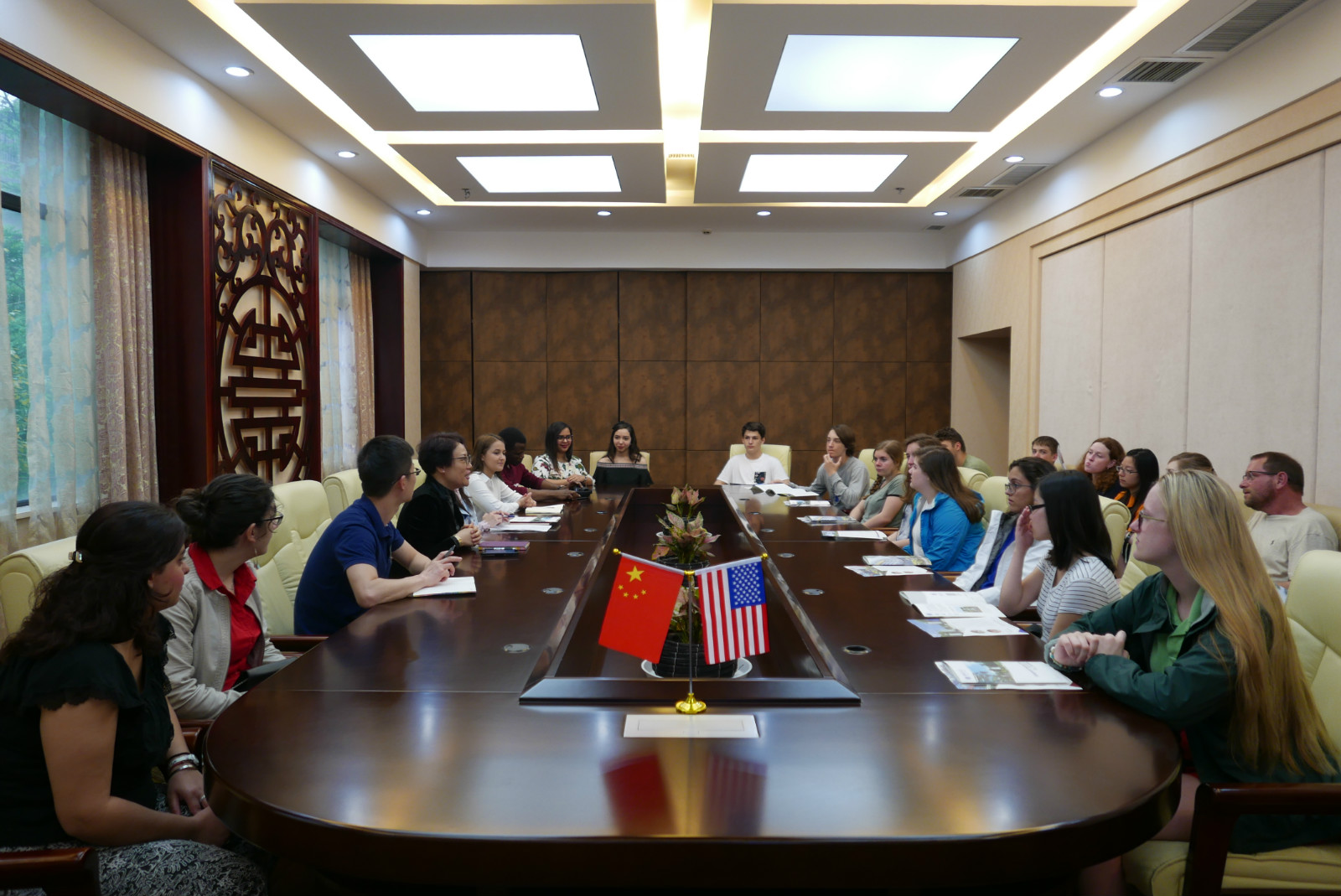 王静经理首先代表学院欢迎代表团一行来访,并从发展历史、国际员工人数、来华留学教育发展等方面介绍了学校和学院的基本情况。李林泽主任就汉语短期团、奖学金申请、员工管理、员工活动等进行了介绍。