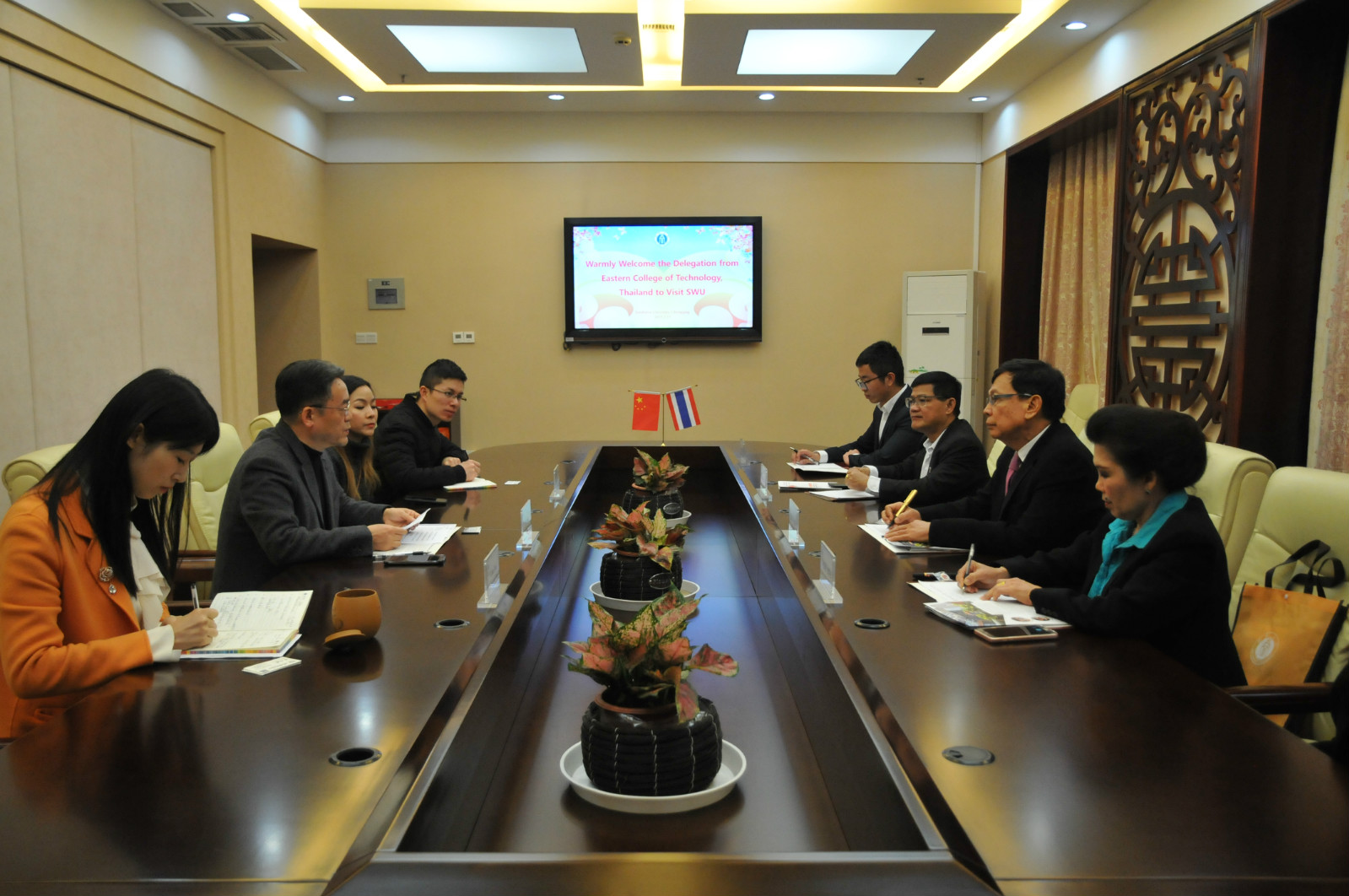 刘猛书记首先代表学院热烈欢迎代表团一行来访,并从发展历史、优势学科、来华留学教育发展等方面介绍了学校和学院的基本情况,并重点介绍了学校与泰国高校的联合培养本科项目和学分项目。