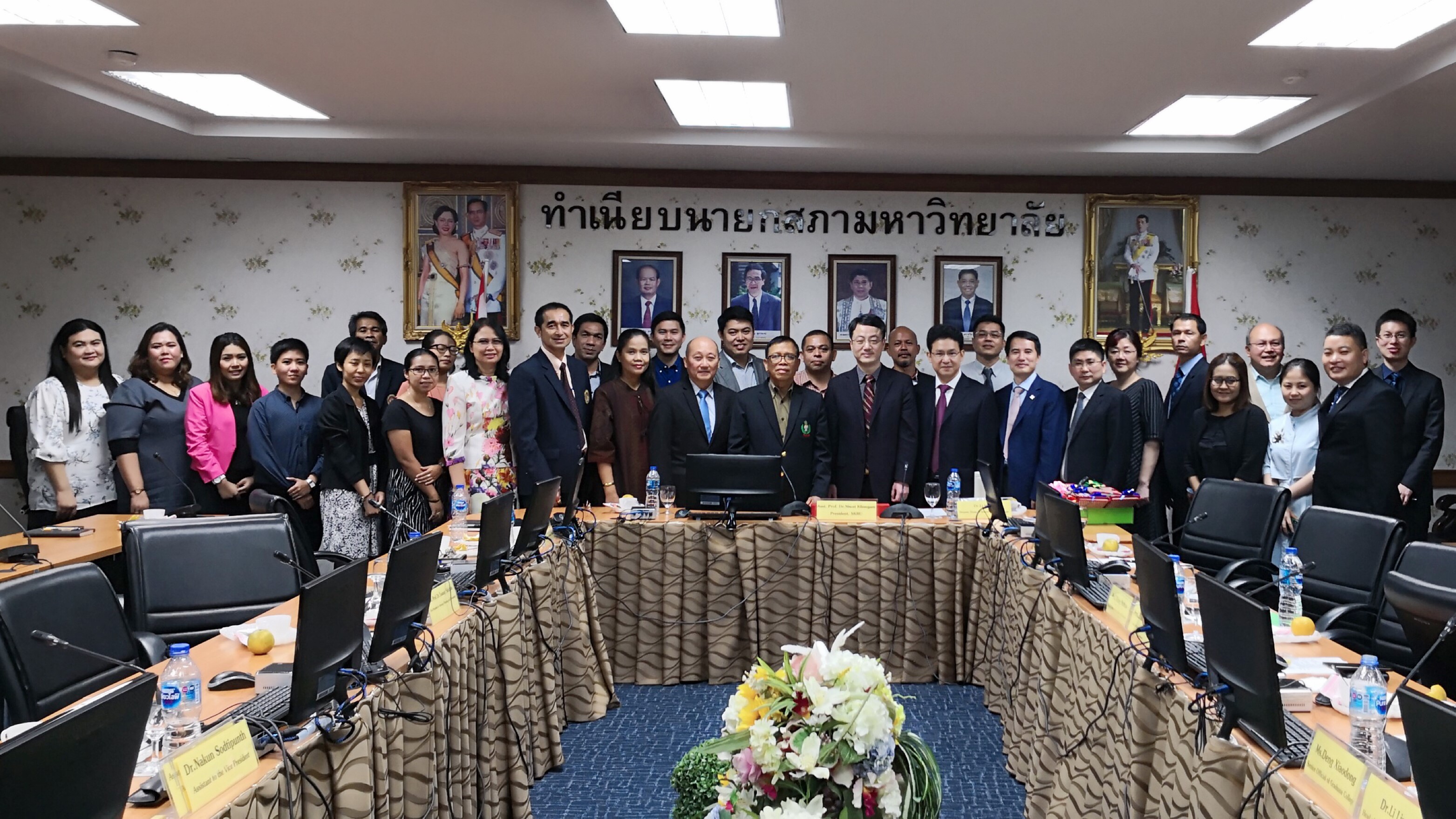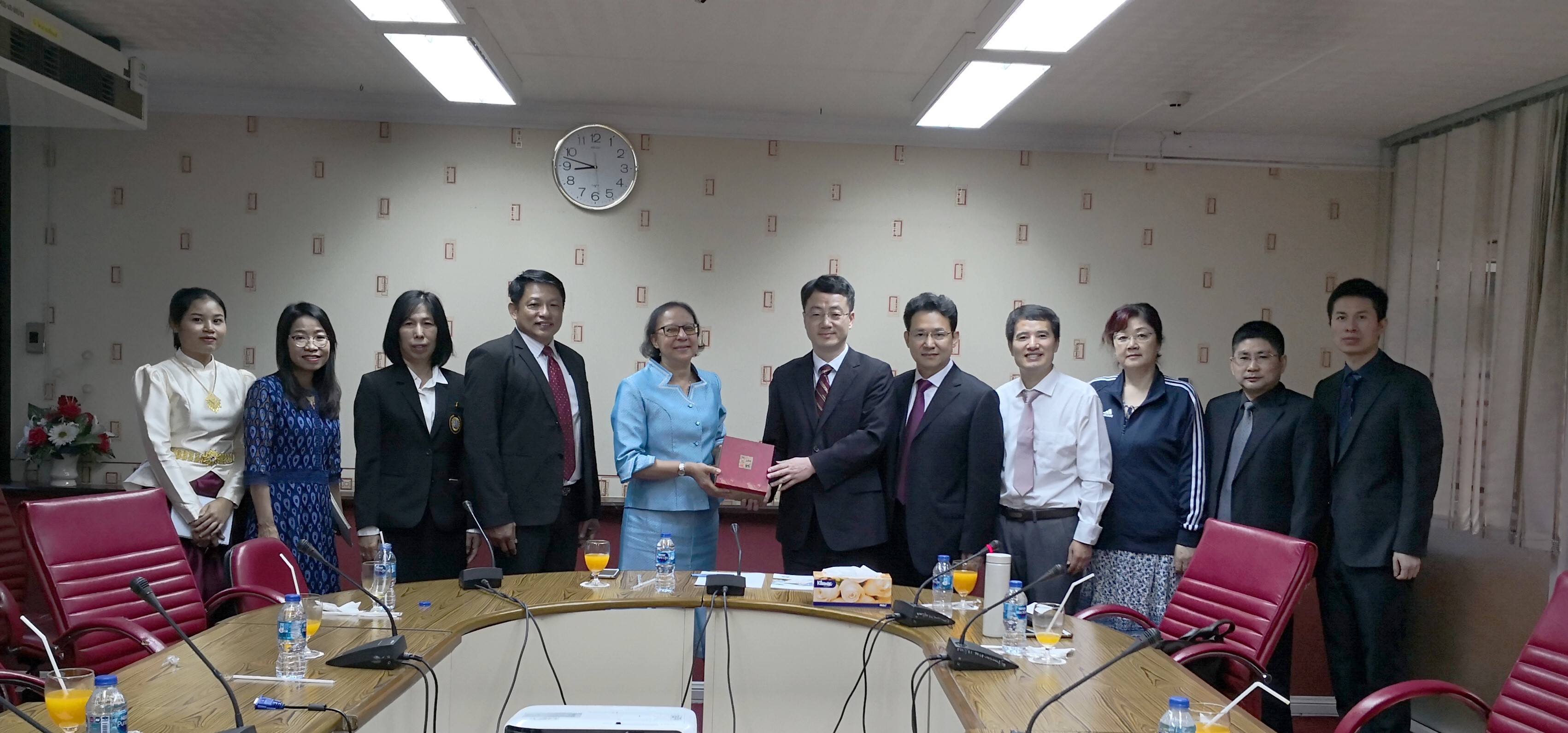 随后,代表团访问了泰国教育部直属的泰国教育行政管理学院,与经理Prasit Kheowsri、副经理Temchit Chantaka及相关部门负责人就重庆市长奖学金高端培训项目总结及申报、建立中泰教育培训中心、境外办学项目等深入交换了意见。