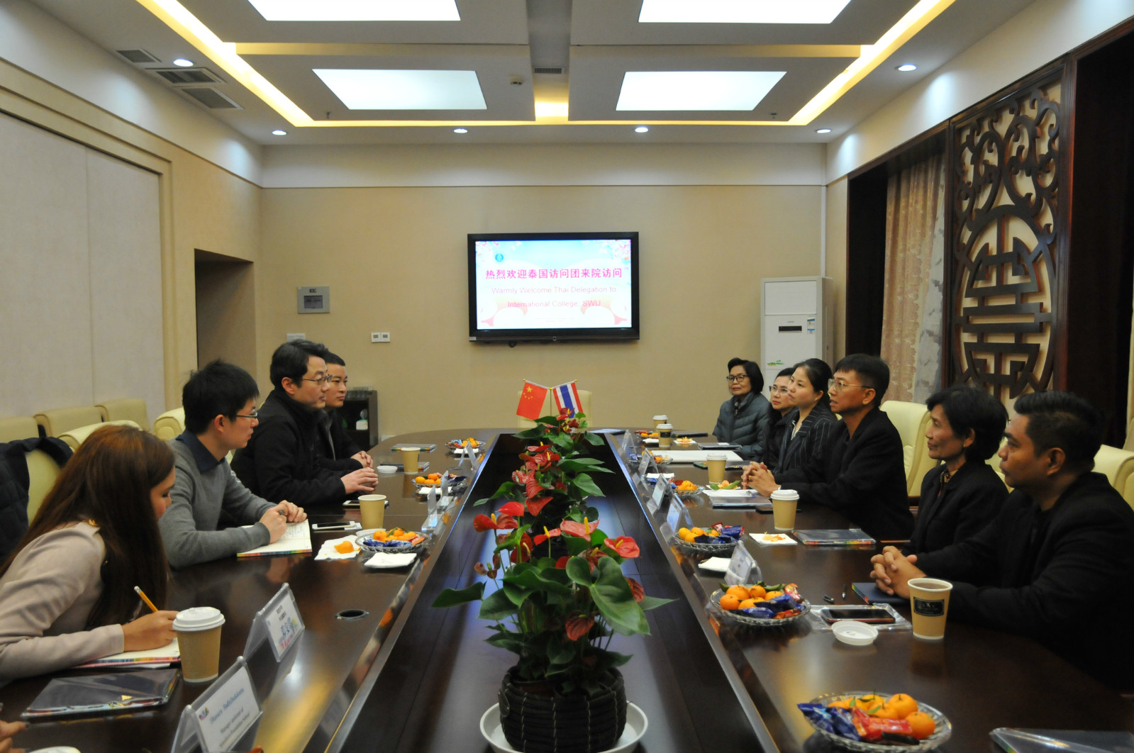 12月2日,来自泰国南部的国光中学、董里华侨学校、树强中学、洛坤中学等组成的泰南董事长代表团来院访问。学院与代表团一行在签约室举行了亲切会谈。座谈会由李航副经理主持。