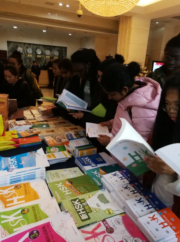 耿军助理介绍了学院的基本概况和办学特色,并就目前国际汉语教材无法满足日新月异的对外汉语教学问题,与外研社姚勇主任展开了讨论。教师们从各自教学需求出发,在外研社此次所展示的丰富的图书资源中选购了最合适的教材。