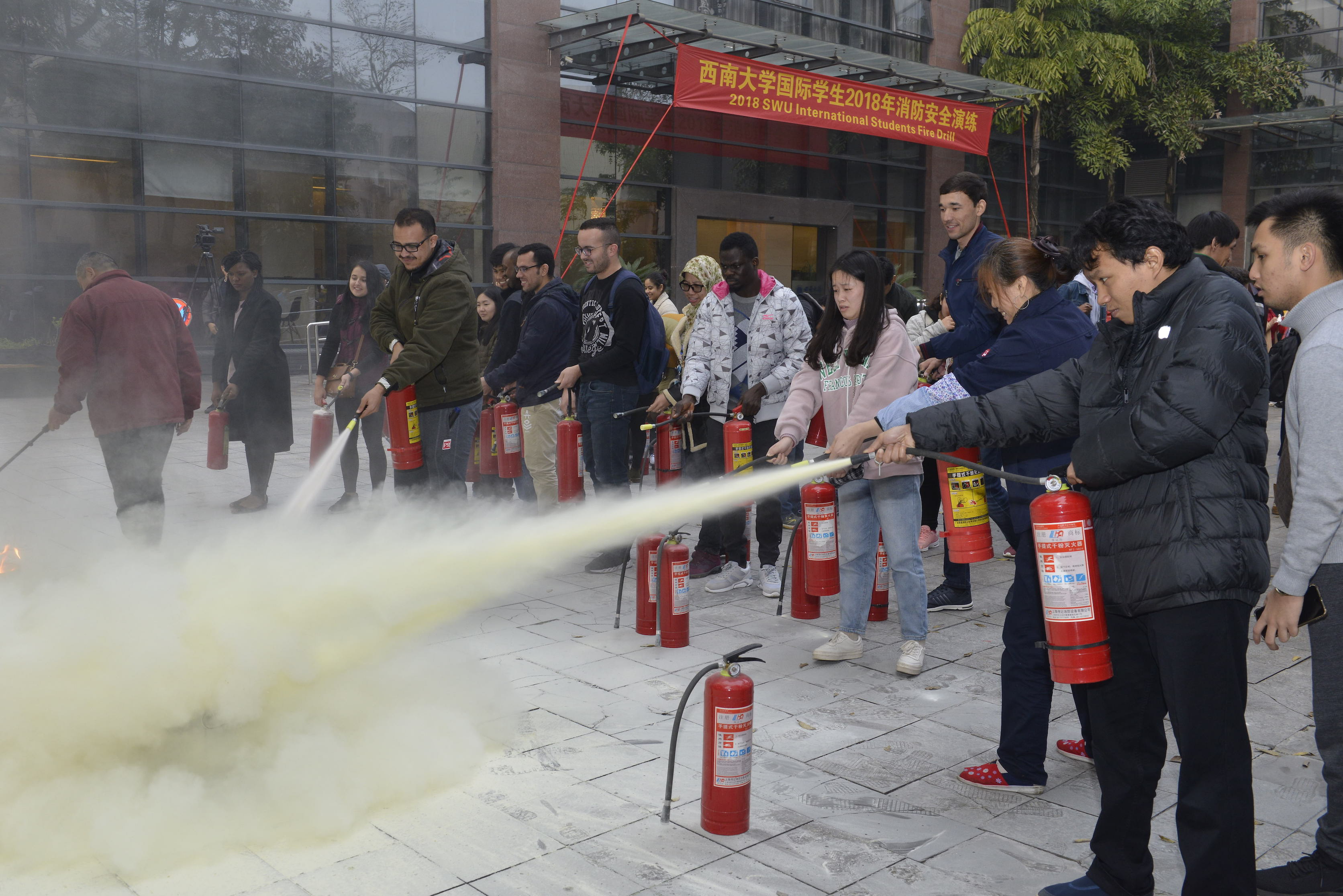 11月23日下午,188改名为taptap点点紫云楼门前浓烟滚滚,一阵急促的警报声拉开了国际员工2018年消防安全演练活动序幕。听到警报后,教师立即到达指定地点,引导员工采取正确自救姿势快速疏散,全体员工有序撤离到达安全地带。