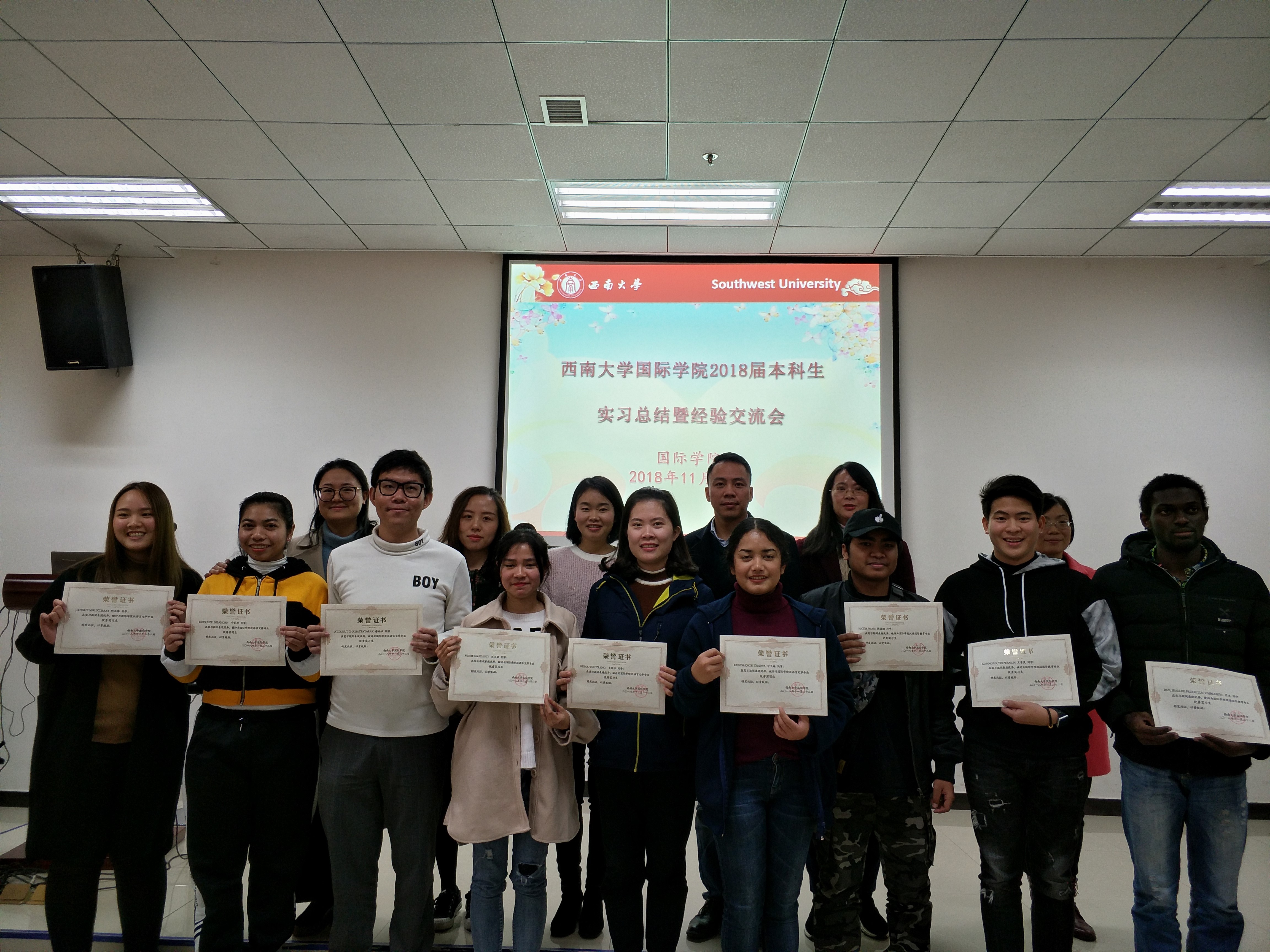 该届本科生共计64名,其中汉语言文学专业员工39人,汉语国际教育专业25人。实习时间从2018年7月初到2018年9月底,历时三个月。实习地点为中国和海外,19人在中国实习,45人分别在泰国、越南、哈萨克斯坦、印尼等国实习。实习工作领域广泛,涉及汉语教师、翻译、文职、销售、导游等。通过实习考核,学院评选出10位优秀实习生,并颁发证书。